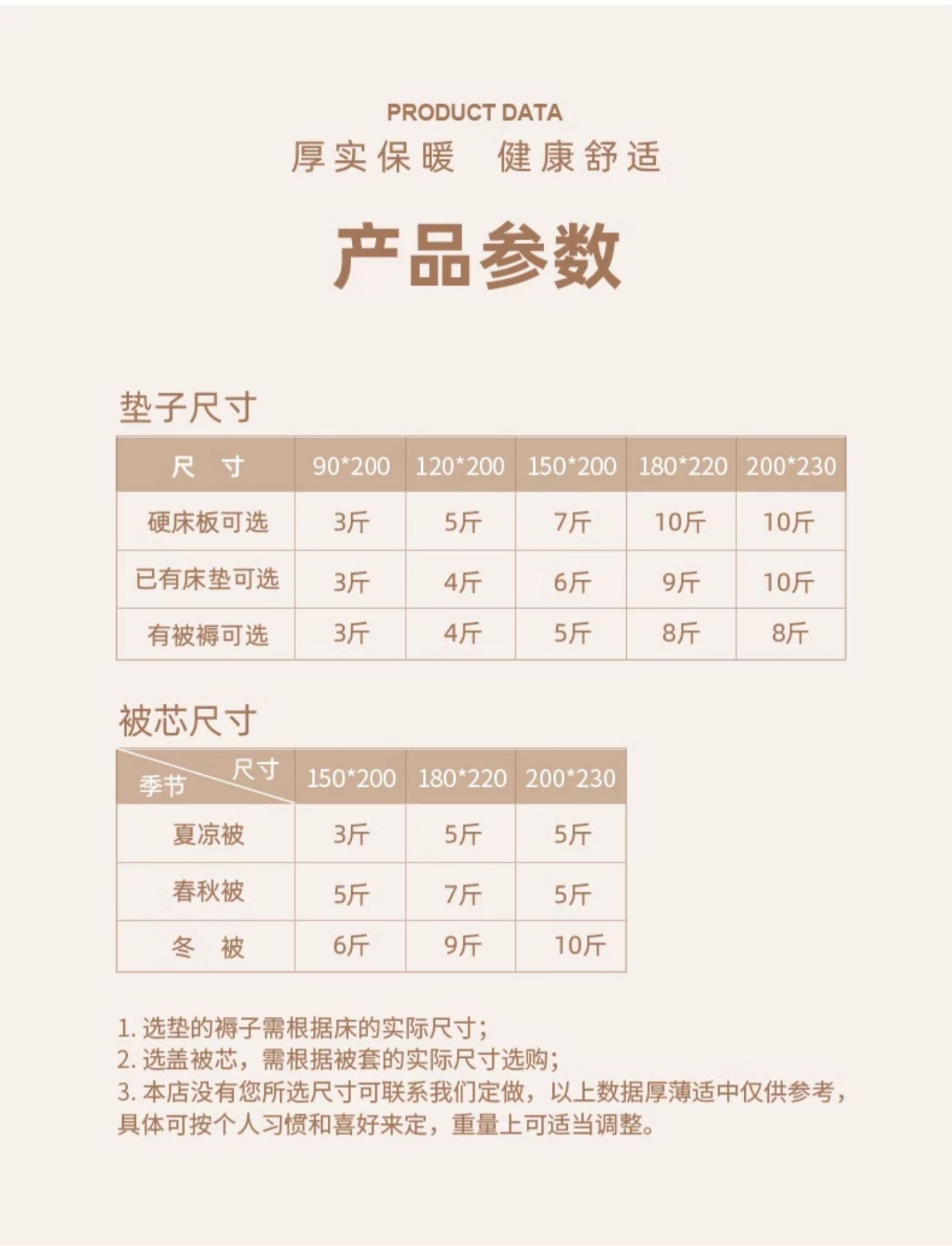 1.5kg [Ультратонкая акция]; 2kg [Ограниченная продажа по убыточной цене]; 2.5kg [Подходит для комнатной температуры 15-20℃】; [Рекомендуемый хит продаж: стеганое одеяло]; 3.5kg 【 Подходит для комнатной температуры 10-15℃ 】; 4kg 【 Подходит для комнатной температуры 0-10℃ 】; 4.5kg Зимняя утолщенная модель [подходит для комнатной температуры 0℃ниже ]; Зимняя утепленная модель [рекомендуемая модель для покупателей из южных регионов]