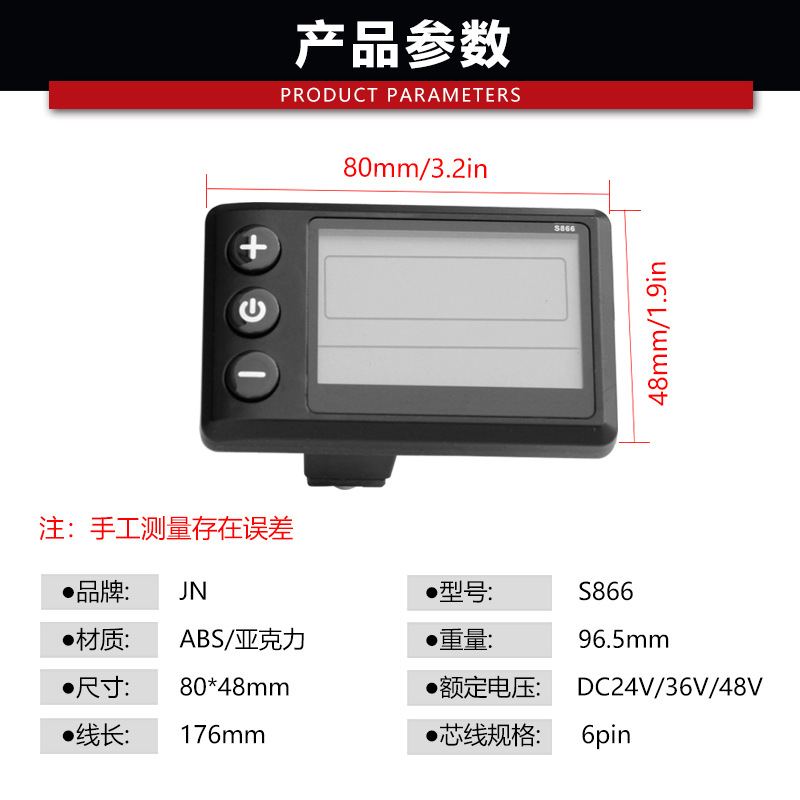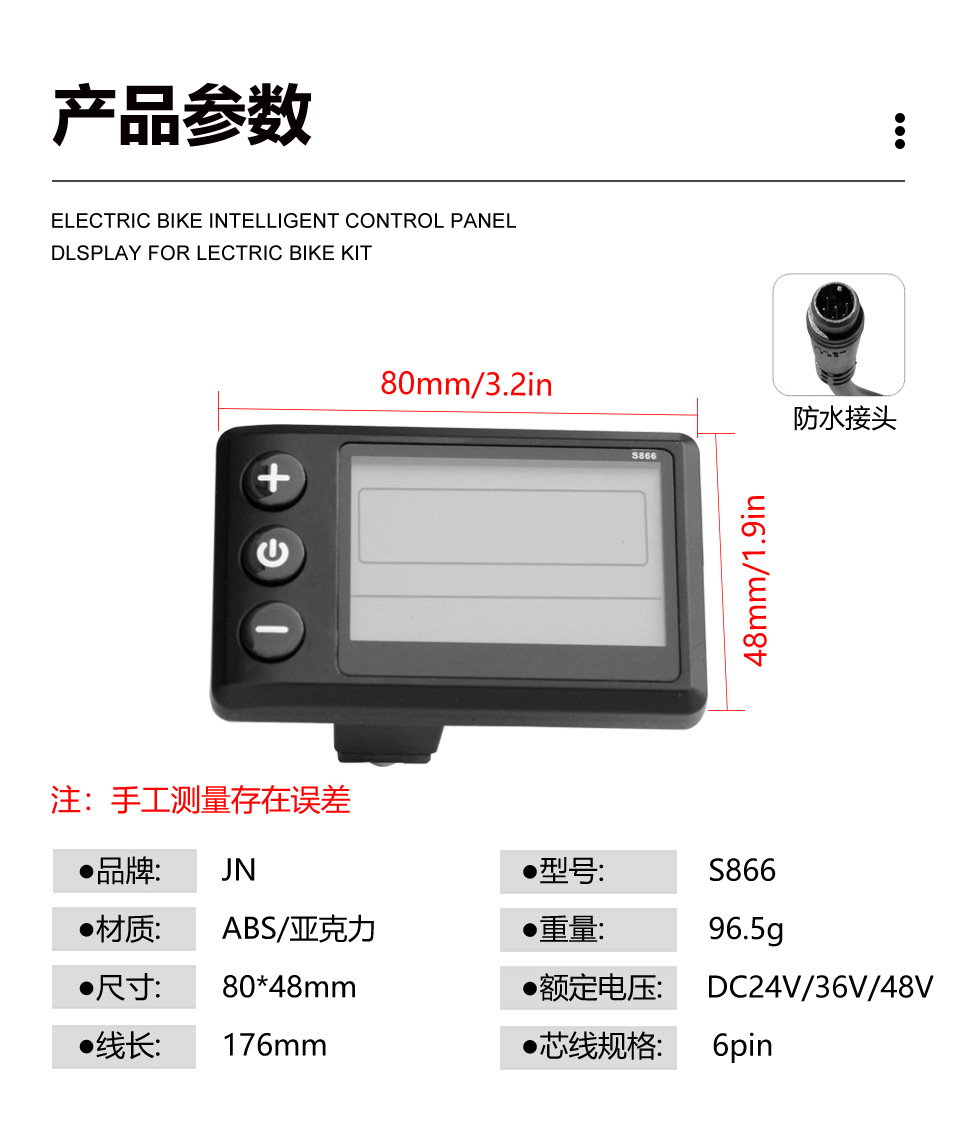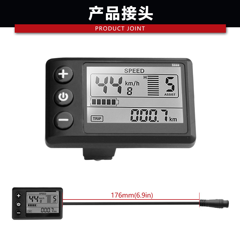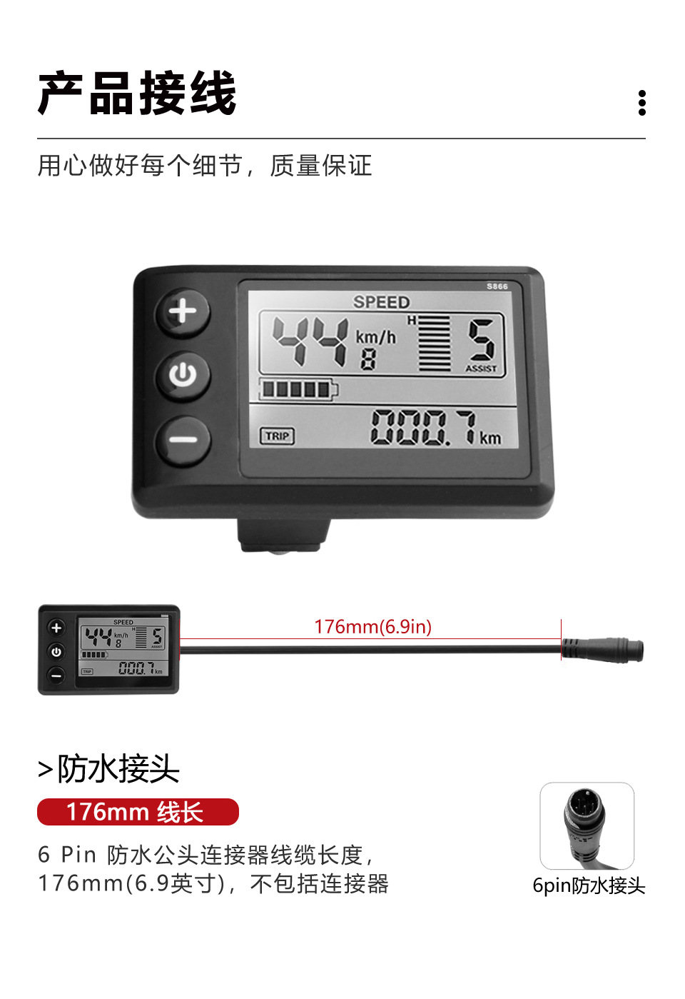 山地车助力改装配件电动滑板车液晶仪表 JN-LCDS866 6芯防水接头