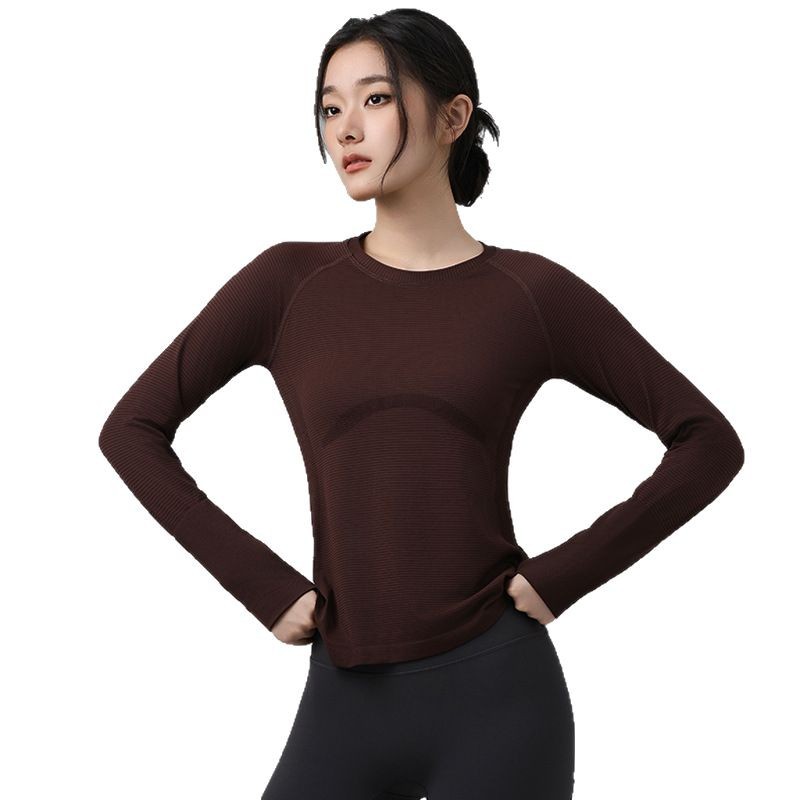 T одежда для йоги, женская осенняя и зимняя, стройная, с высоким пуля, с круглым вырезом, длинные рукава, тренировка по бегу, быстрая сухая спортивная одежда