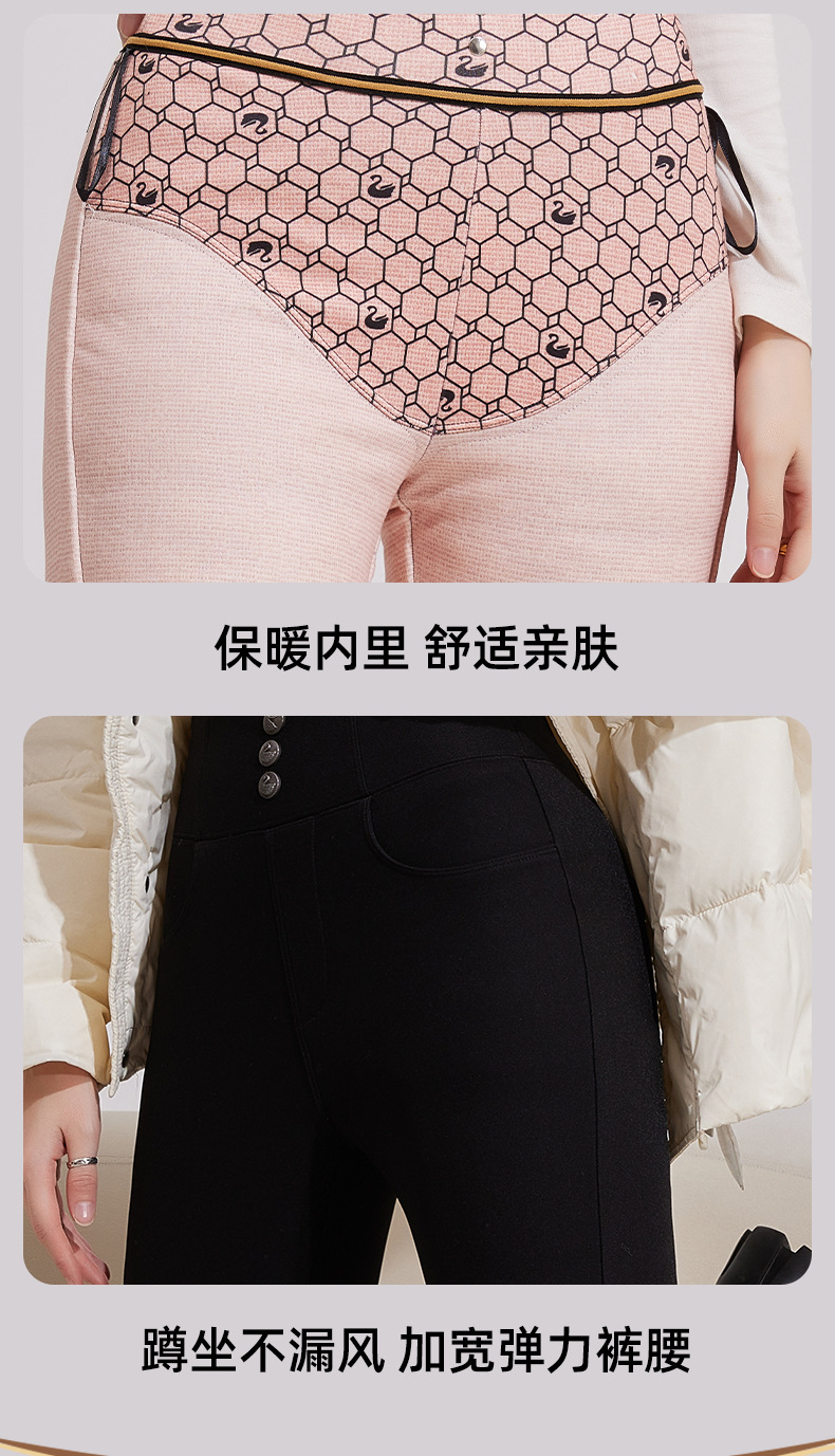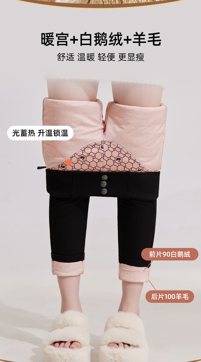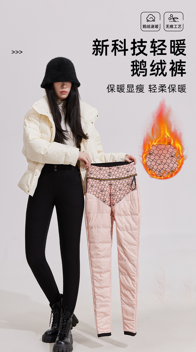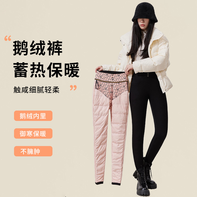 Женские зимние штаны из гусиного пуха, новая модная коллекция 2024 года, удлиненные хлопковые штаны с флисовой подкладкой и утолщенные черные штаны для экстремально холодной погоды.