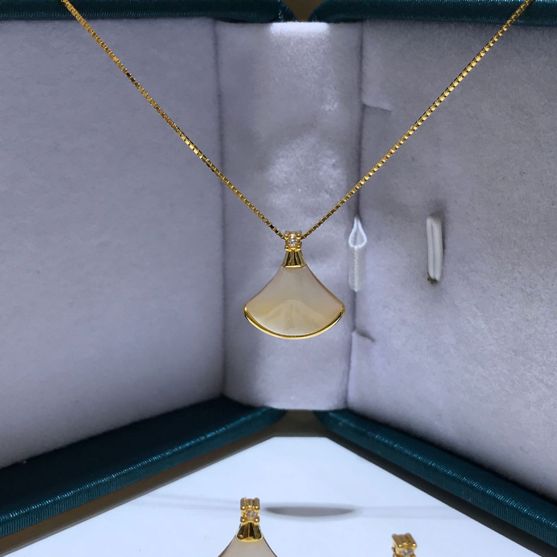 Маленькая юбка-подвеска из белого жемчуга и бриллиантов из золота 18 карат, золотая подвеска au750, полная бриллиантов, доступное роскошное простое ожерелье в форме веера