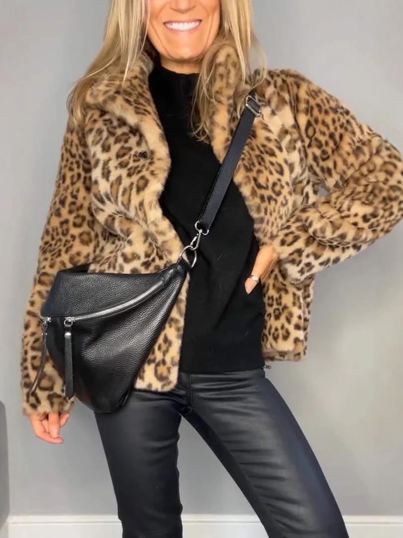2024 зимний новый стиль внешней торговли женское пальто независимая станция горячая продажа мода леопардовый лацканный воротник имитация меха топ