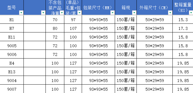 H7; H11; 9005; 9006; H13; H4; 9004; 9007