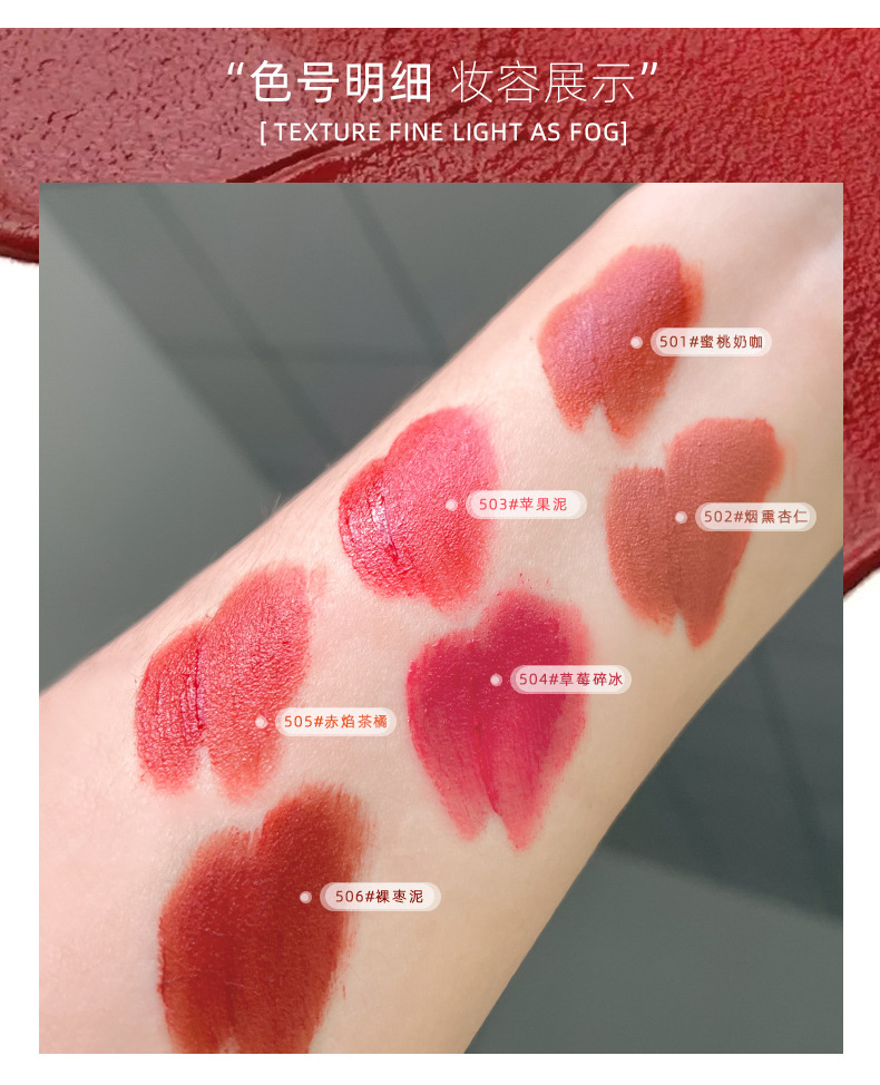 501#Кофе персиковое молоко; 502#копченый миндаль; 503#яблочная грязь; 504#Клубничный колотый лед; 505#Красный чай Ян оранжевый; 506#Голая грязь в виде зизифуса; 901#Кандидированные цветки вишни; 902#Кремовый абрикосовый оранжевый; 903#сладкая клубника; 904#Сладкий и пряный оранжево-коричневый; 905#Томат жизненной силы; 906#Карамельный каштан; 01#сухой розовый; 02#красный чай с цитрусовыми; 03#Корица и Персик; 04#Темно-красная фасолевая паста; 05#Кристаллическое замороженное яблоко; 06#Дымчатая бобовая паста; В01#красный грушевый цвет; В02#карамельно-красновато-коричневый; В03#Чай с корицей и молоком; В04.#Золотисто-блестящая паста из красной фасоли; В05.#дикая яблоня; В06.#ржаво-красно-коричневый; В07.#помидорный хурма; В08.#Винно-красный байберри; Н01#яблочное пюре; Н02#персиковая кожа; Н03#вишневая кожица; Н04#половина ложки сахара; Н05#ложка соли; Н06 # кожица грецкого ореха; T01-Розовая фасольная паста; T02-Кофе с миндальным молоком; T03-Красный груша-голубка; T04 - Мяньманский перец чили; T05-Тутовый красный виноград; T06-Кофе с молоком и белым персиком; 01#курильяные ягоды; 02#Красно-коричневая паста из жужубе; 03#Дымчатая бобовая паста; 04#полузрелый персик; 05#Терракотовый цвет; 06#Молоко с миндальными нотками