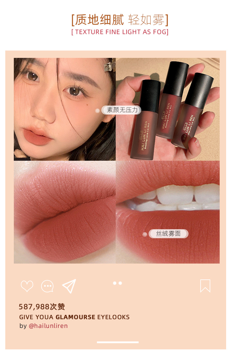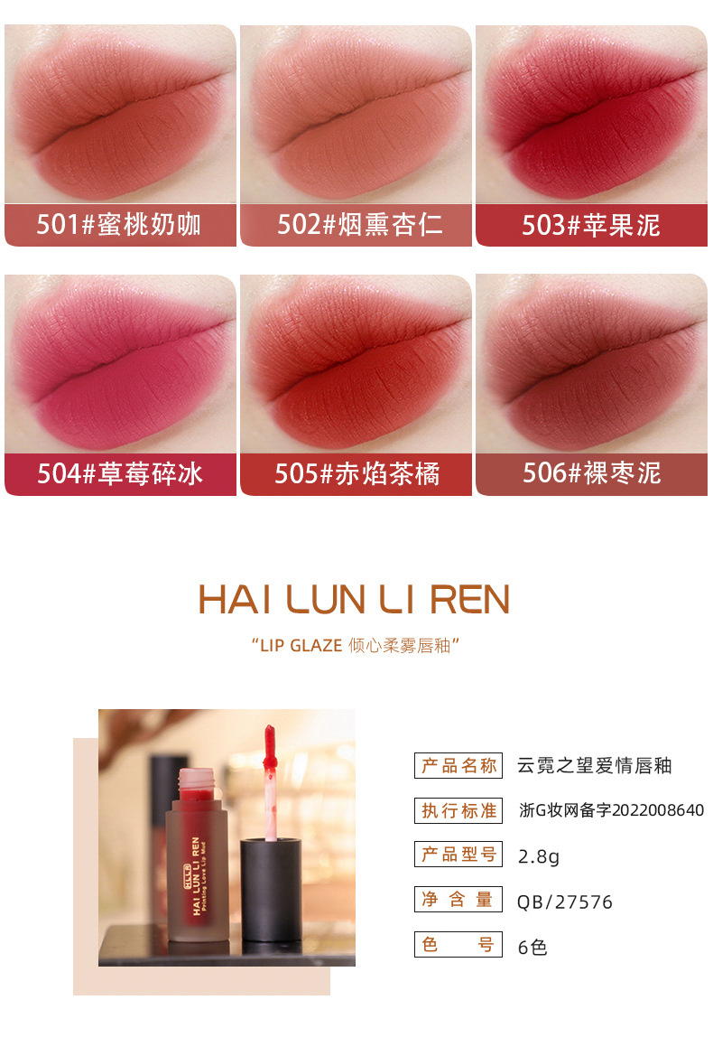 Хелен Лирен высокая ценность для губ глазурь бархатная матовая губная помада без чашки