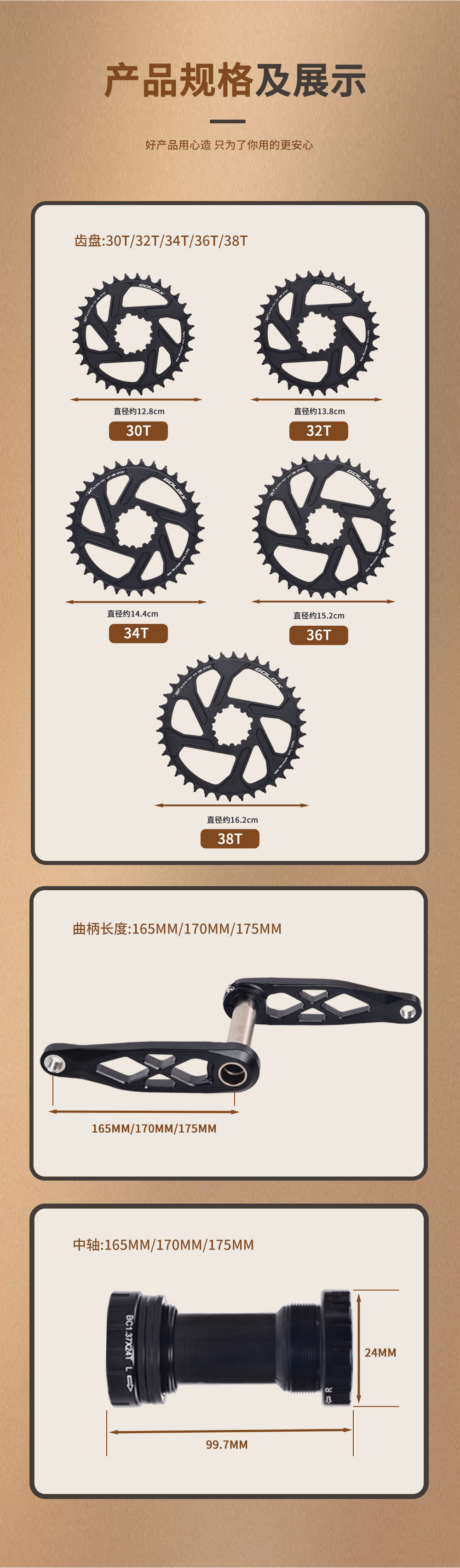 特别说明:安装曲柄需锁紧脚踏,未锁紧会导致滑丝。请一定要到专业的车店或者专业技师安装,避免曲柄滑丝,如因个人操作不当导致滑丝,概不质保