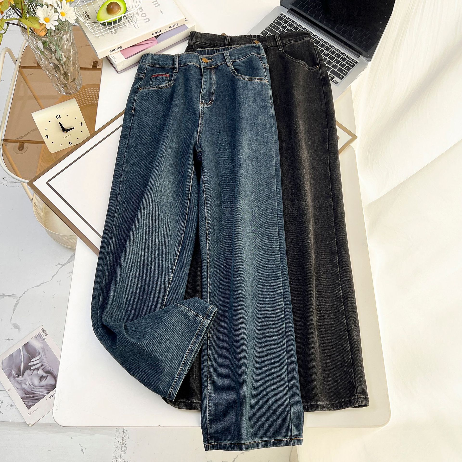 2024 осень и зима новый 200 кг толстый MM большой размер простой плоти толстый полотенцесушитель джинсовые прямые брюки женский 5544