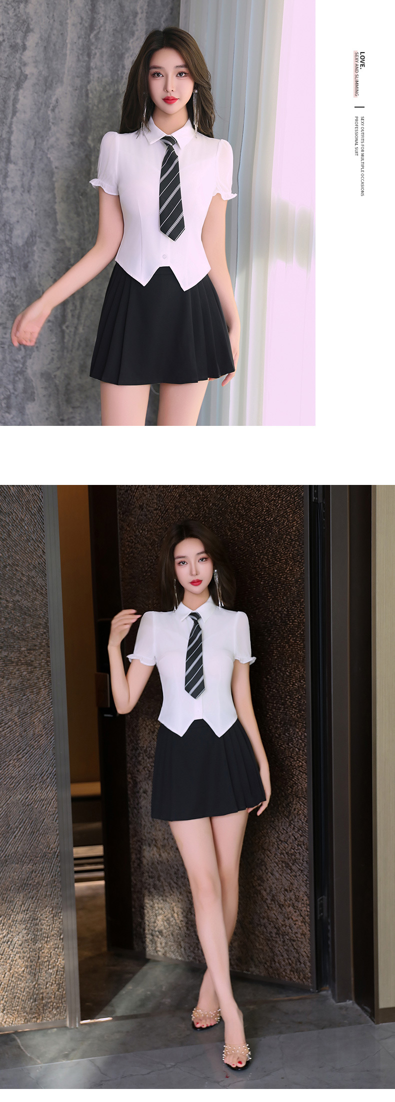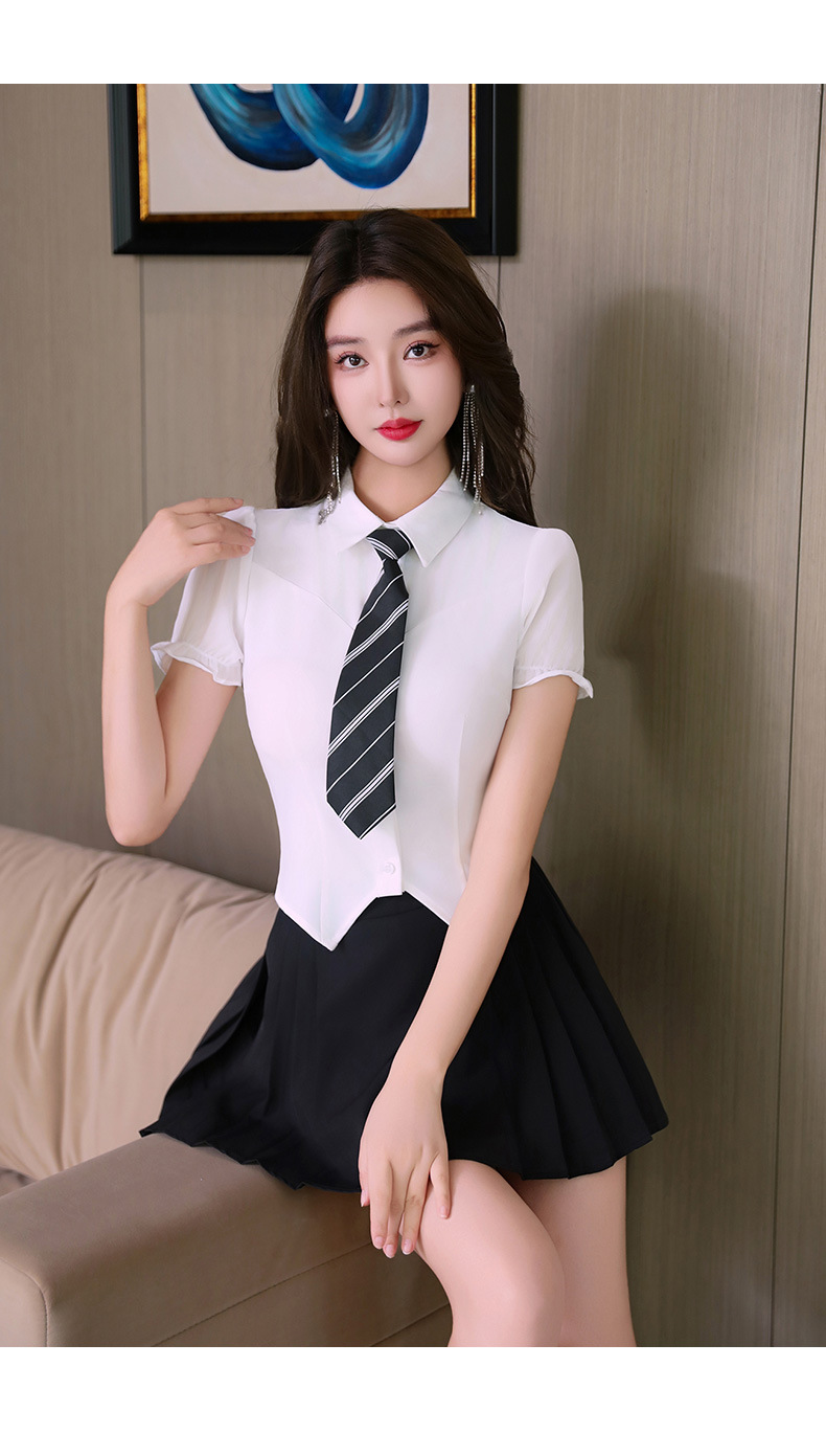 Белый и черный костюм (по умолчанию с галстуком-бабочкой); Одинарный верх (с завязкой); одинарная юбка; Одинарный верх (с галстуком-бабочкой)