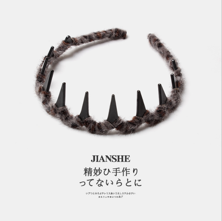 Осенний и зимний ретро леопардовый с зубчатым плюшевым обручем женский противоскользящий для лица