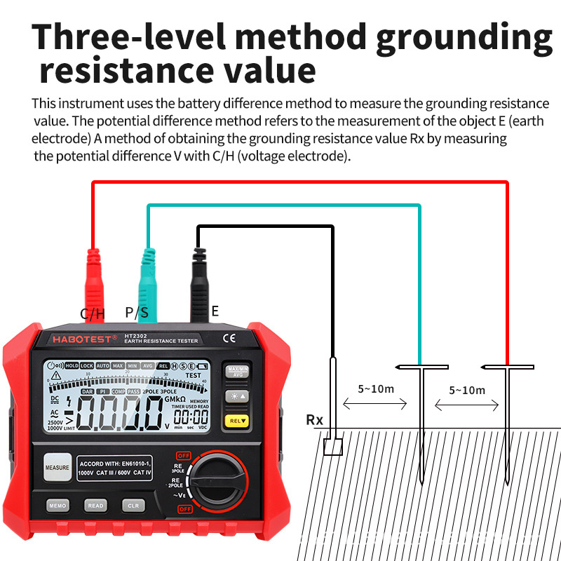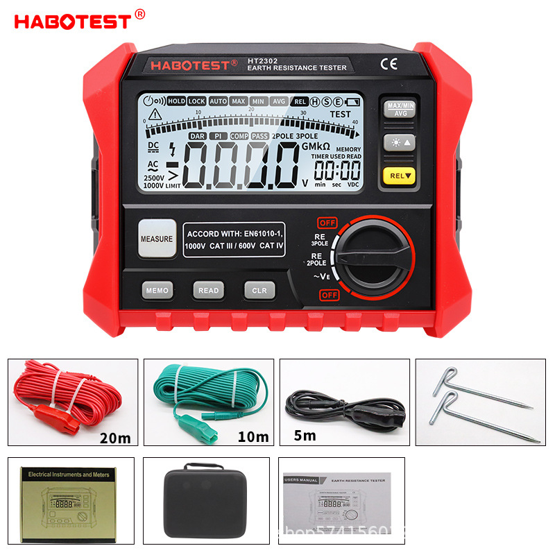 Измеритель сопротивления заземления HABOTEST HT2302, цифровой измеритель сопротивления заземления для измерения сопротивления почвы при молниезащите