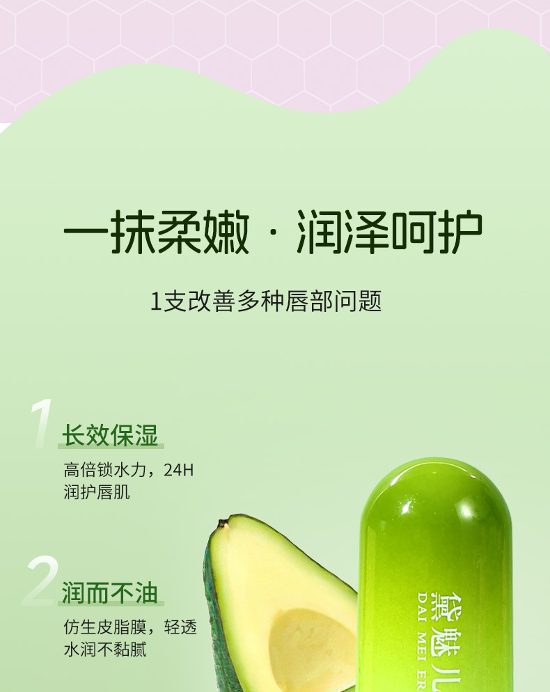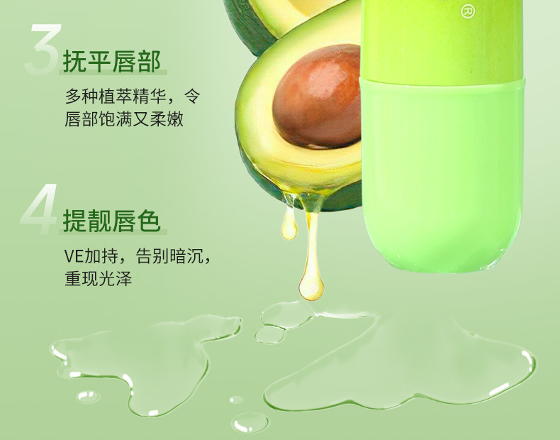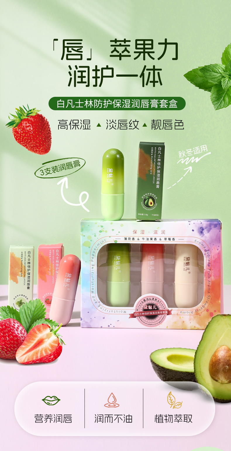 Набор увлажняющих бальзамов для губ из 3 шт.; Увлажняющая помада с авокадо, аромат 1 коробка; Увлажняющий бальзам для губ с запахом клубники 1 коробка; Увлажняющая помада с мятным вкусом 1 коробка