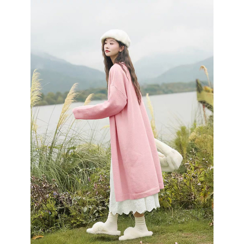 Кашемир средней и длинной ленивый ветер вязание для беременных зимой новый маленький свободный свитер куртка