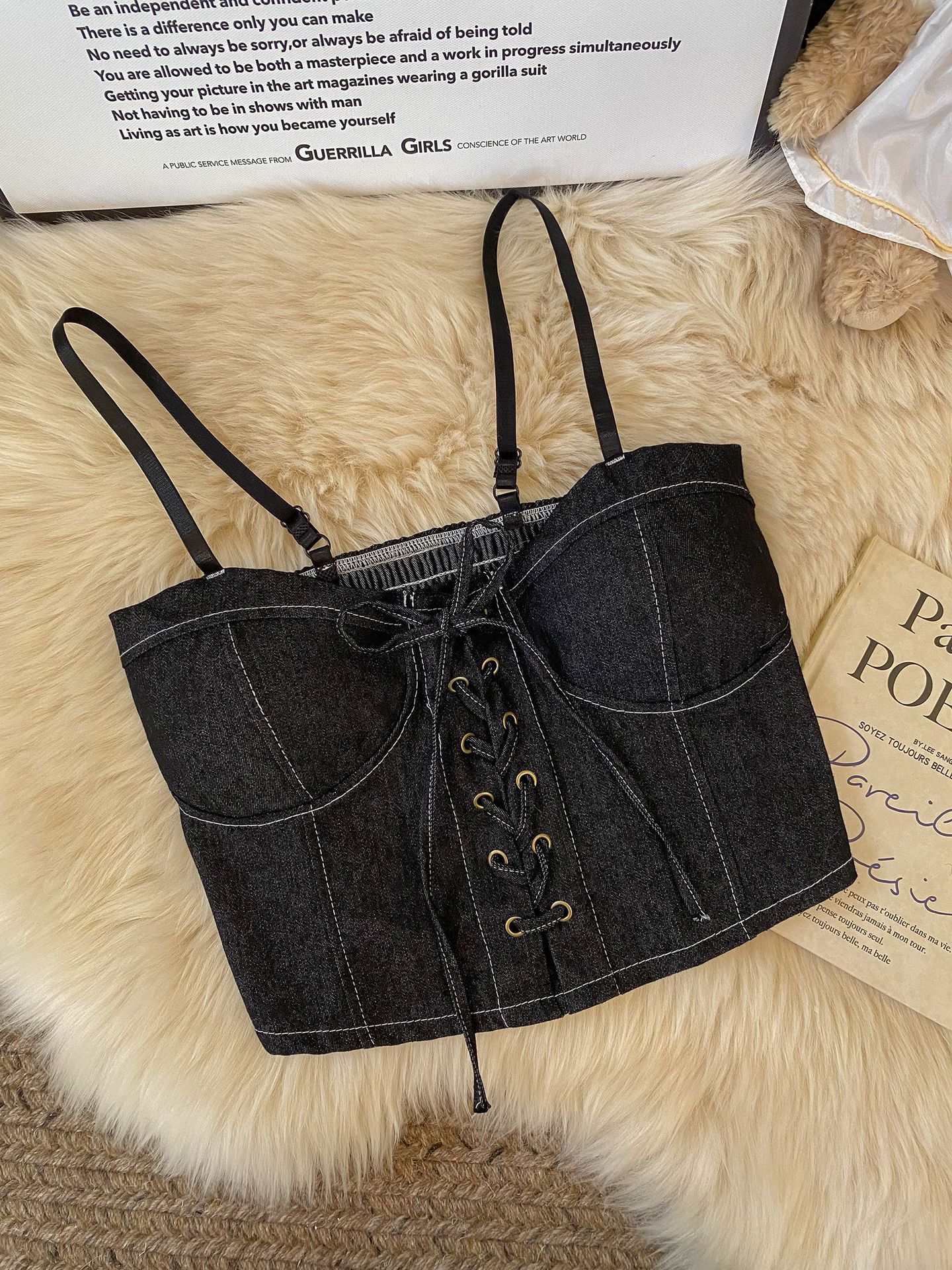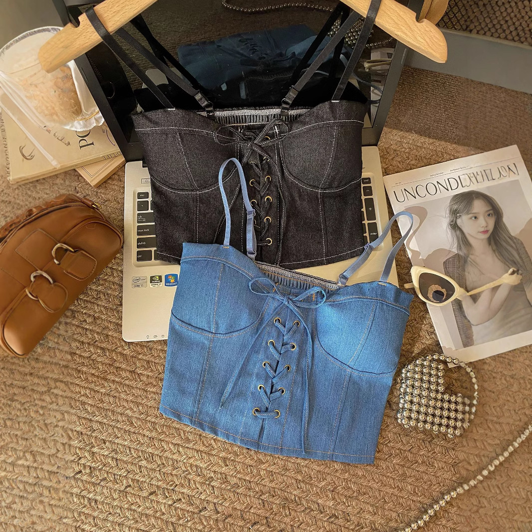 Весенний новый бант с шнуровкой Короткий джинсовый камзол