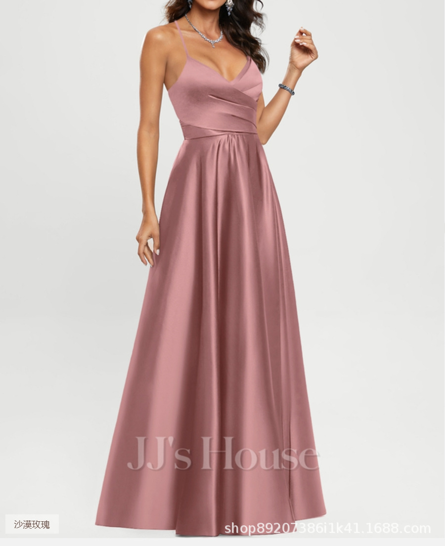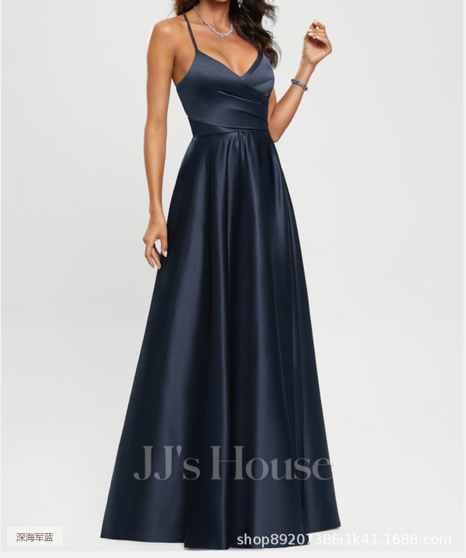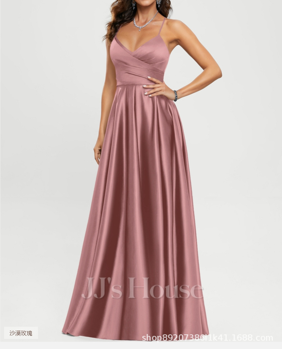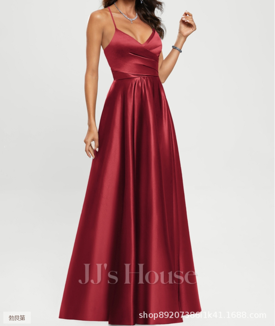 Amazon Европейское и американское атласное платье подружки невесты, длинное платье для похудения с открытыми плечами, вечернее платье Amazon для подружки невесты