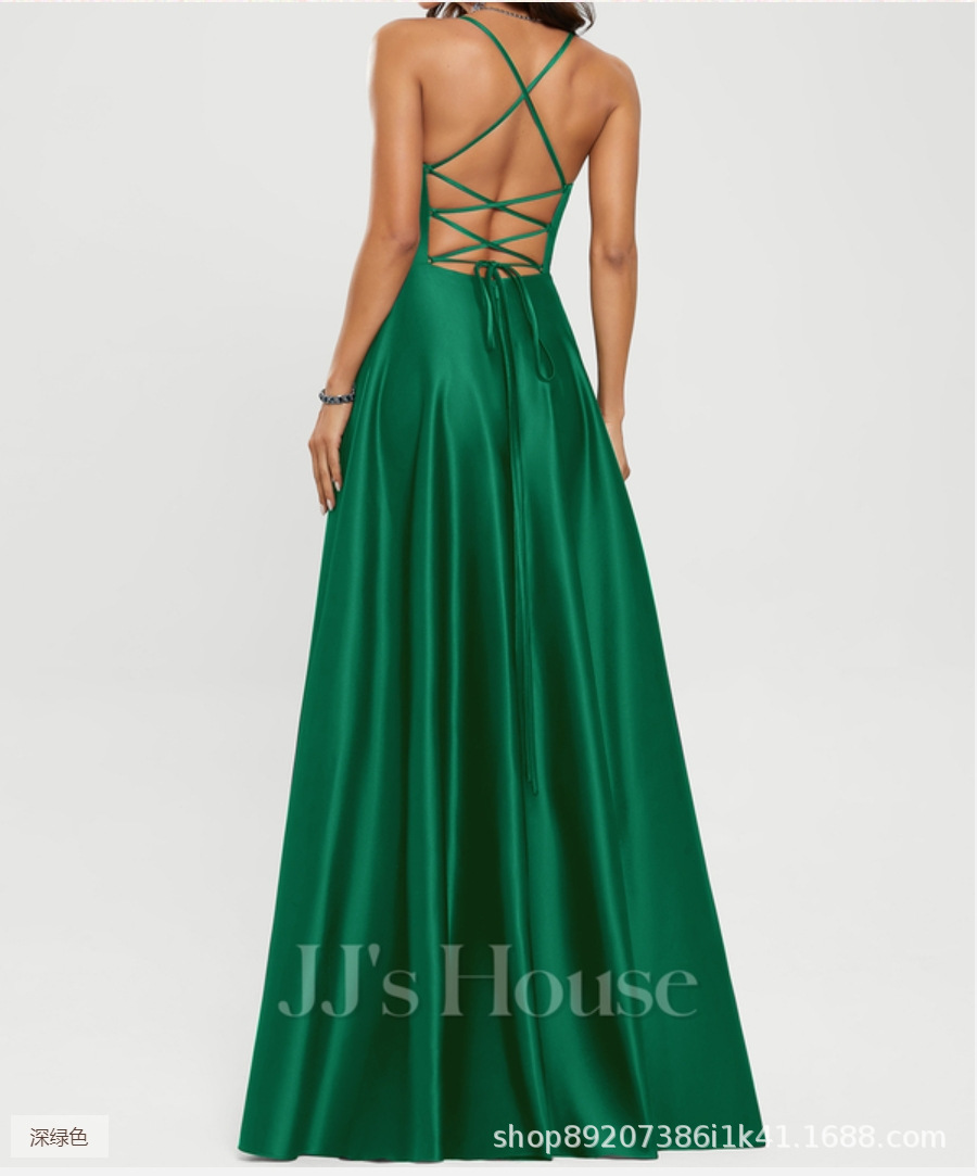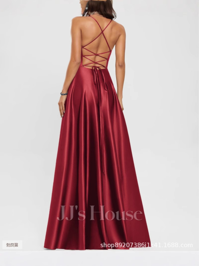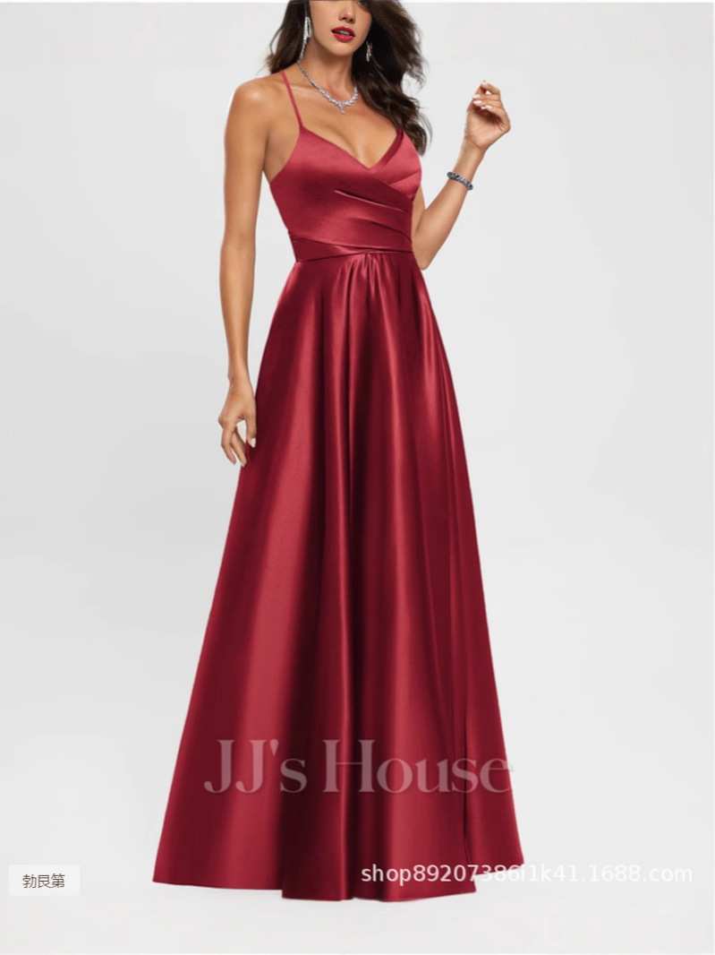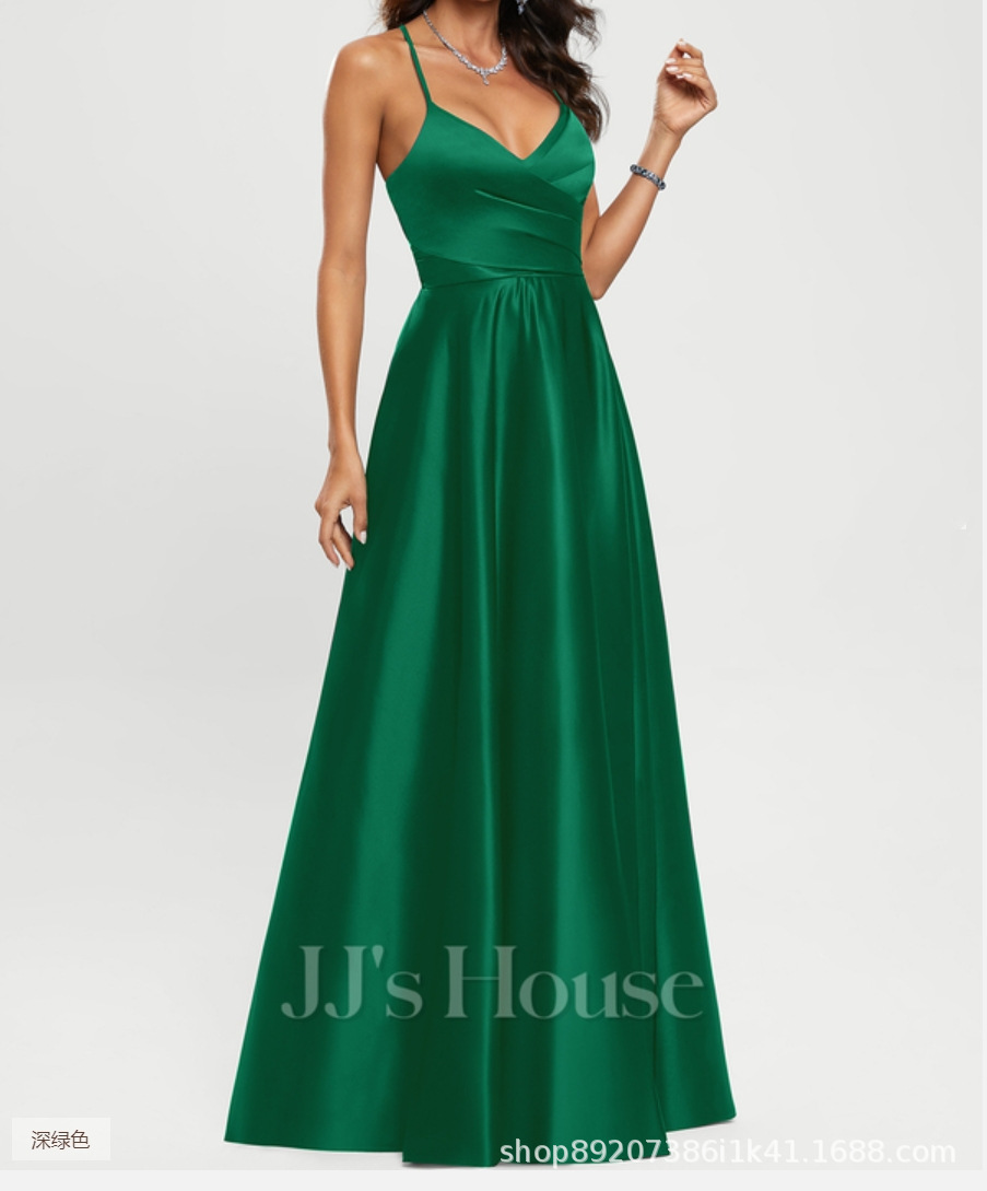 Amazon Европейское и американское атласное платье подружки невесты, длинное платье для похудения с открытыми плечами, вечернее платье Amazon для подружки невесты