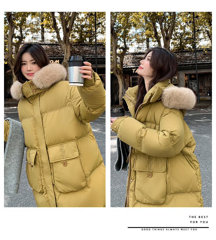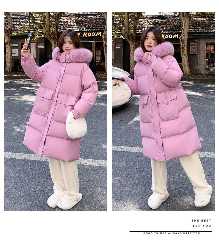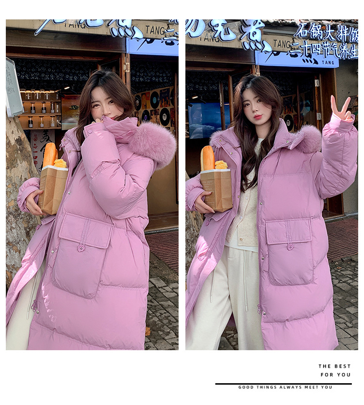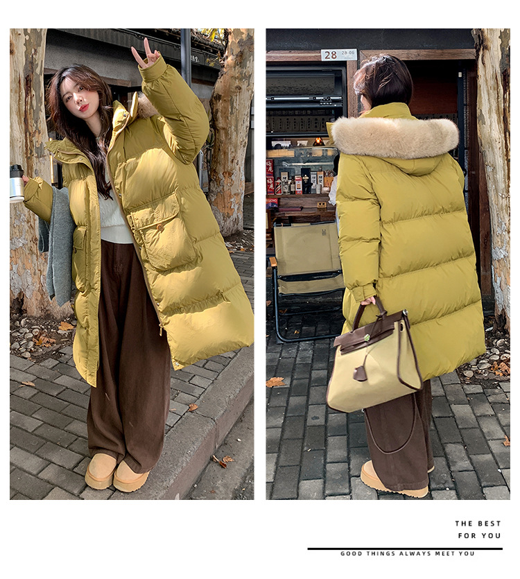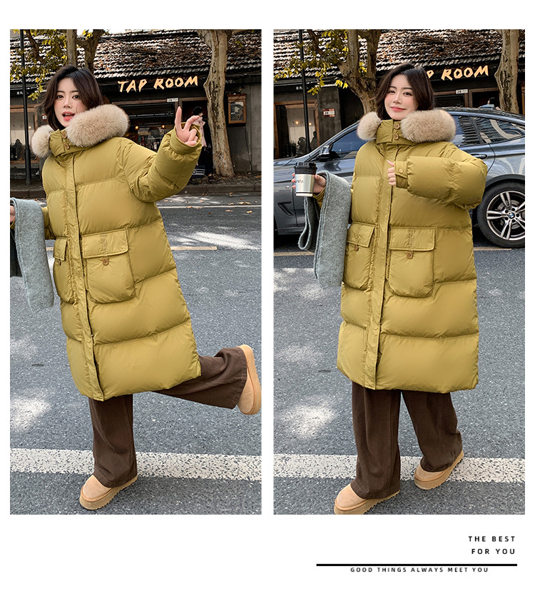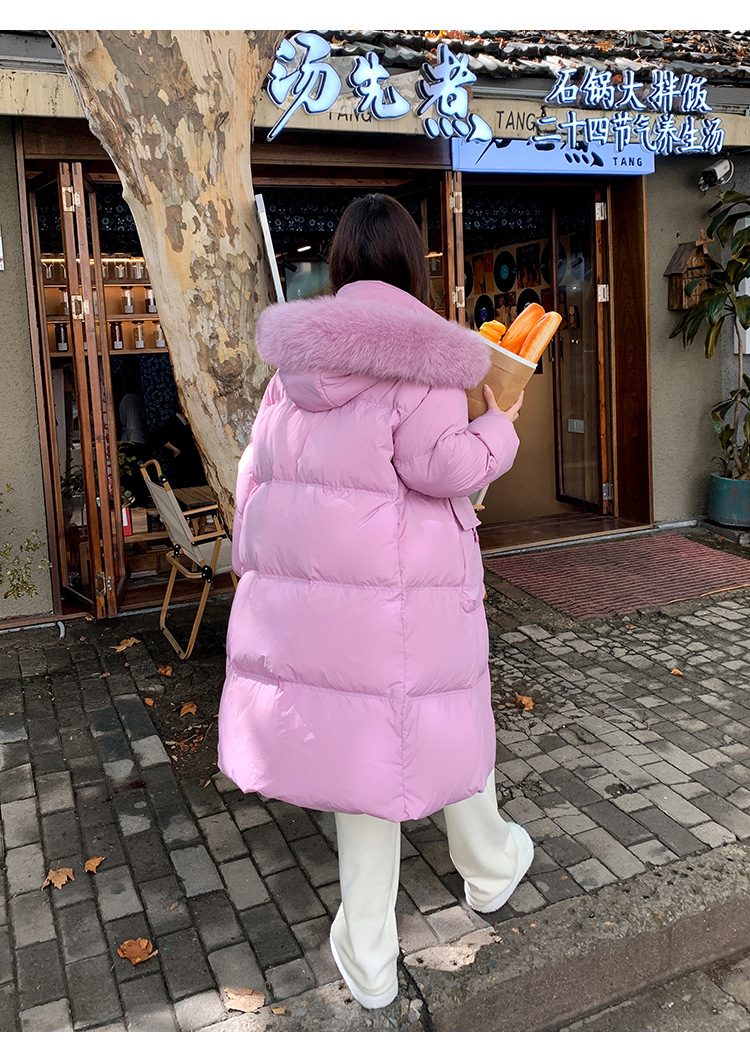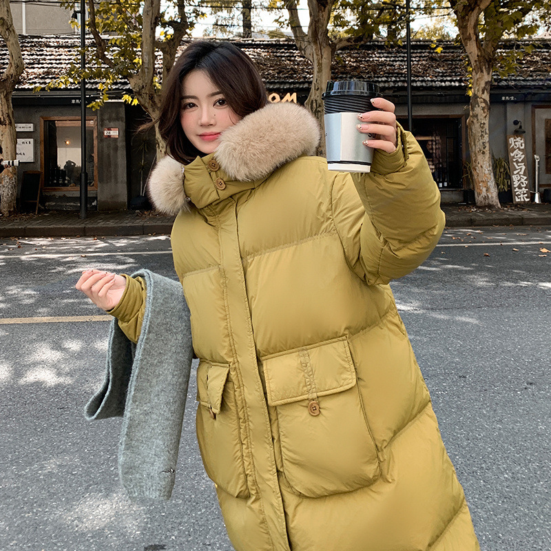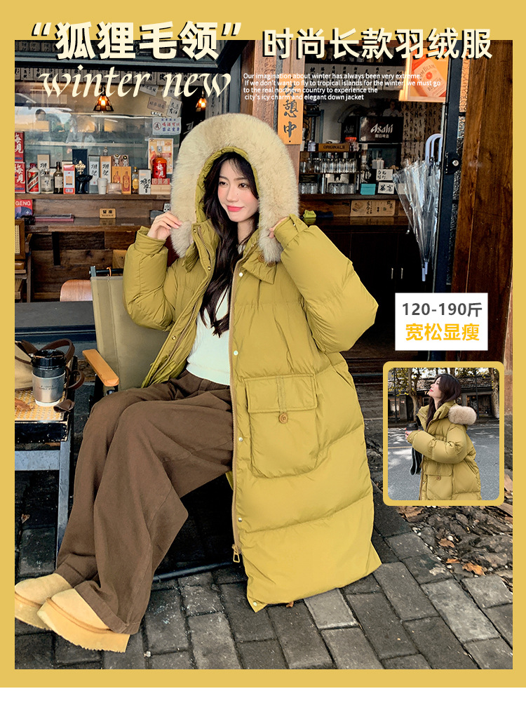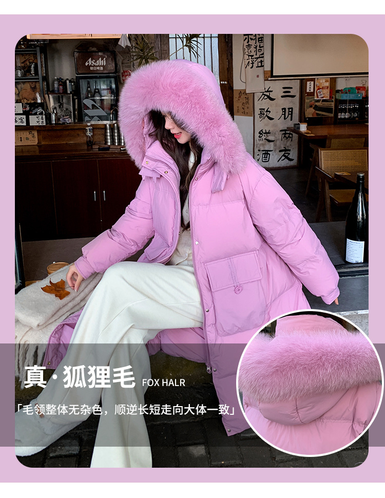 Пуховик 2025 года, удлиненный, очень большой размер, для полных женщин (размер 100kg и выше), приталенный, с капюшоном и воротником из меха лисы, модель 227
