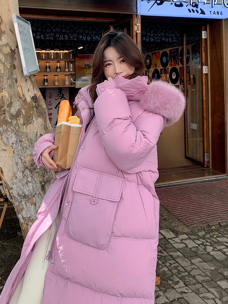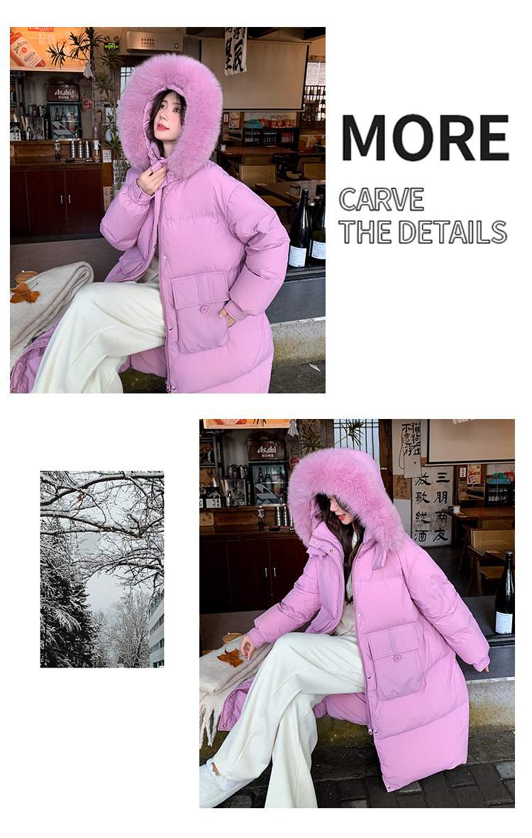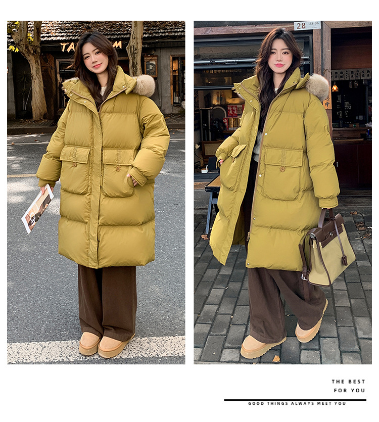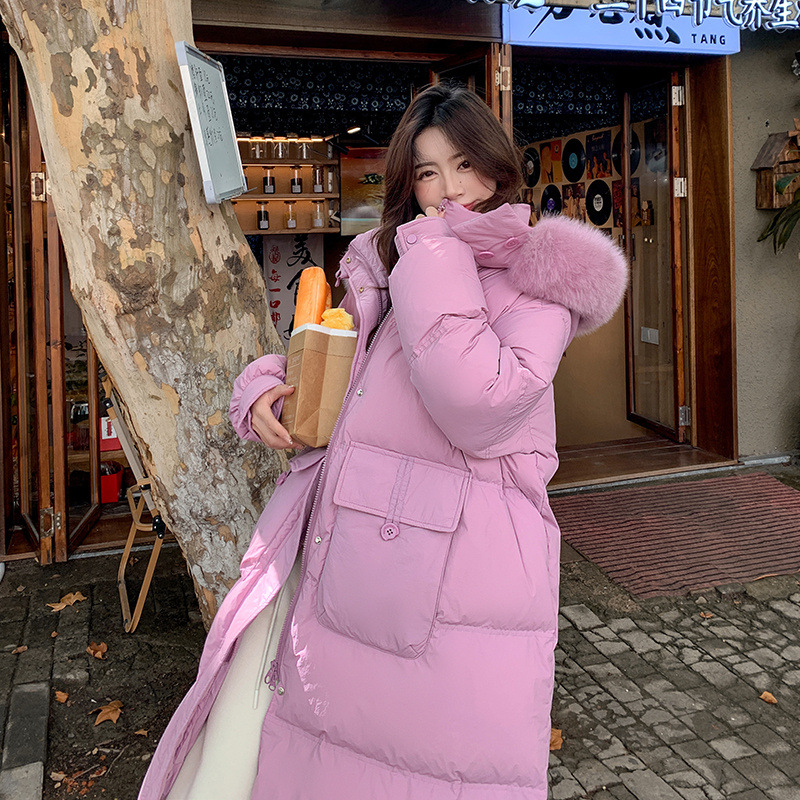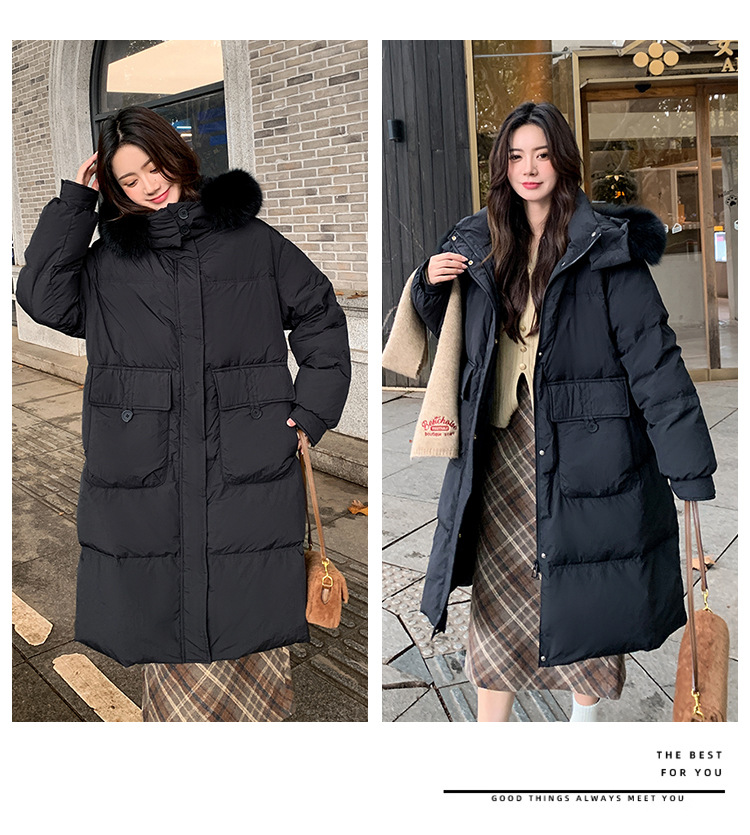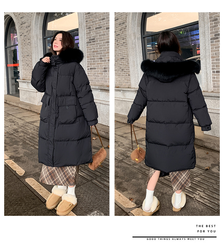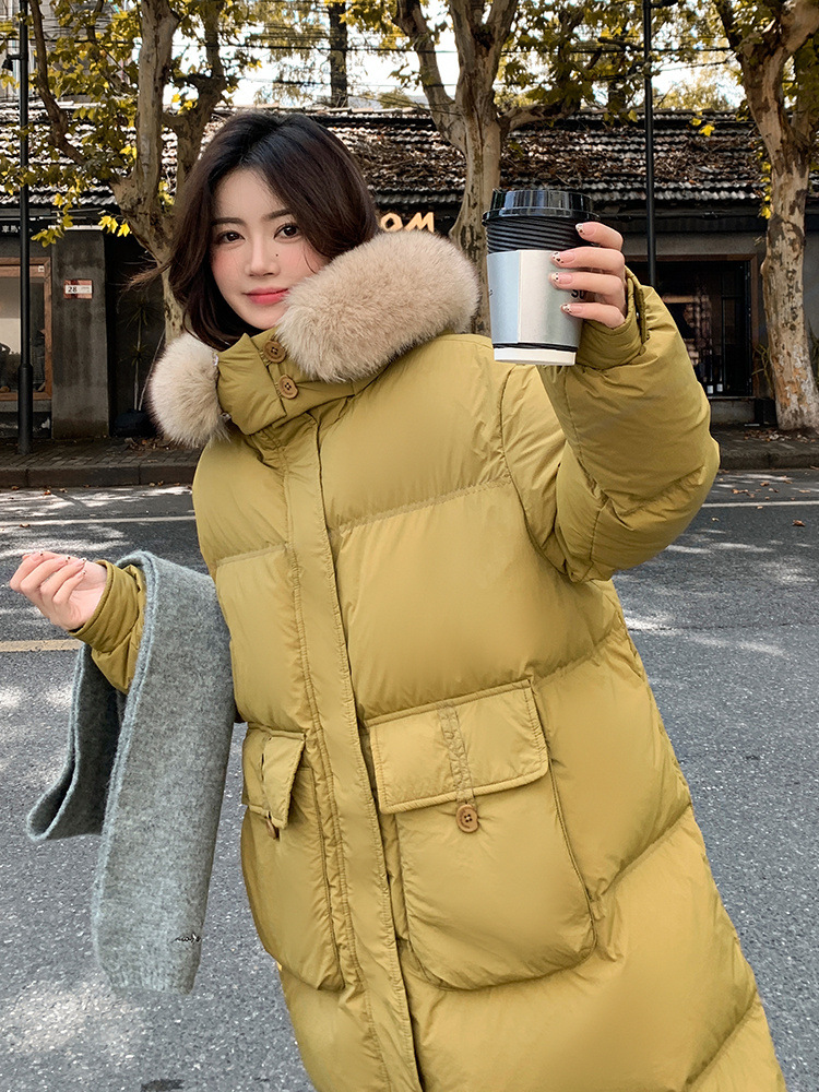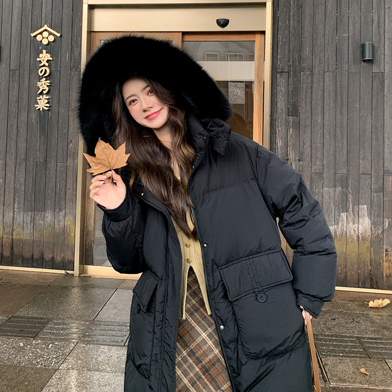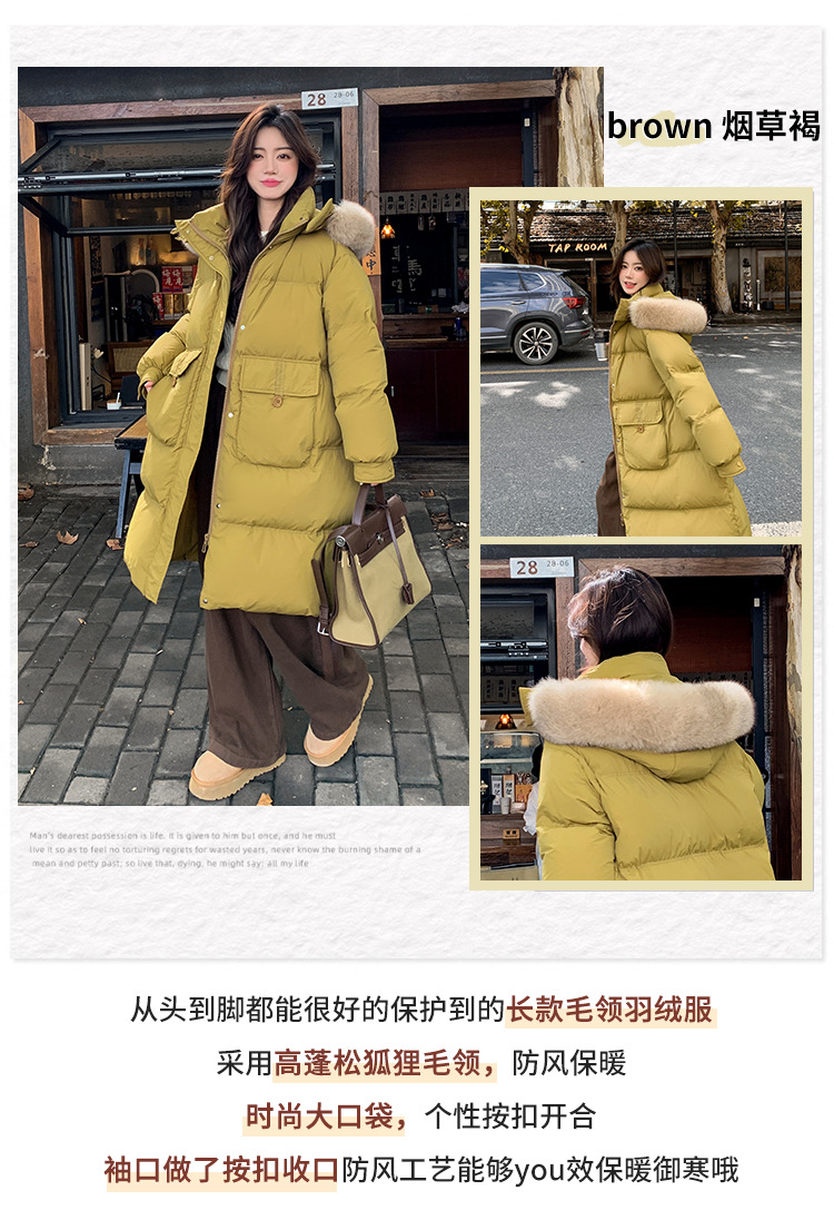 Пуховик 2025 года, удлиненный, очень большой размер, для полных женщин (размер 100kg и выше), приталенный, с капюшоном и воротником из меха лисы, модель 227