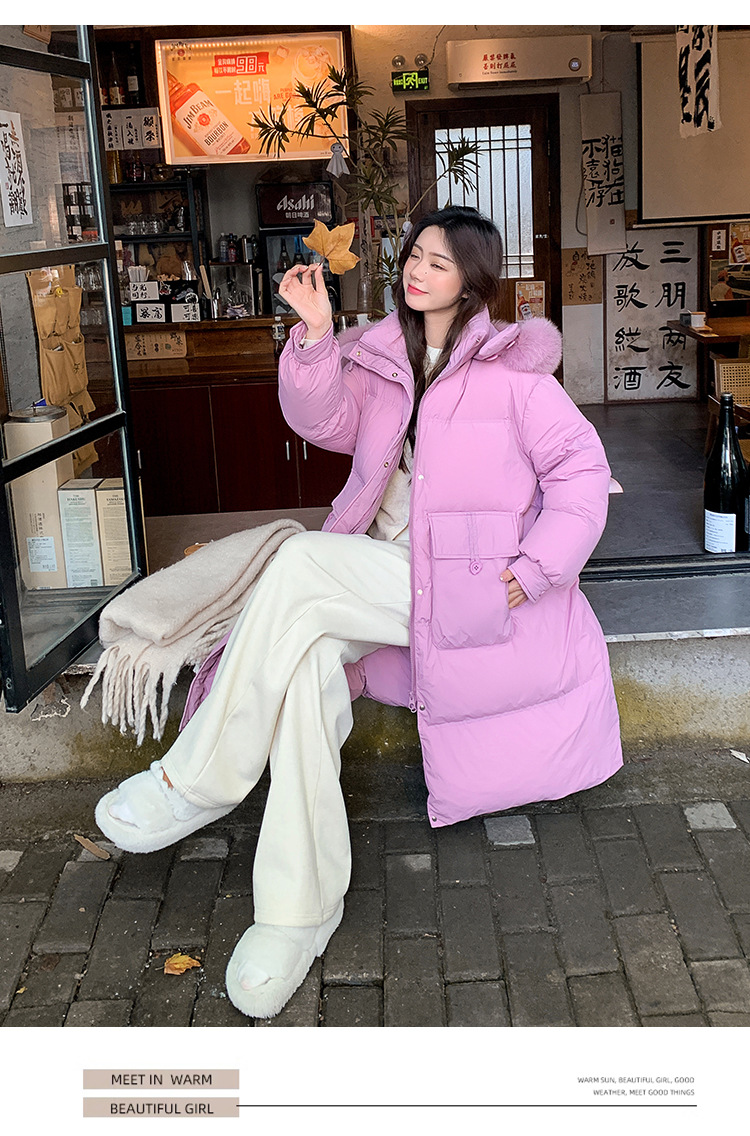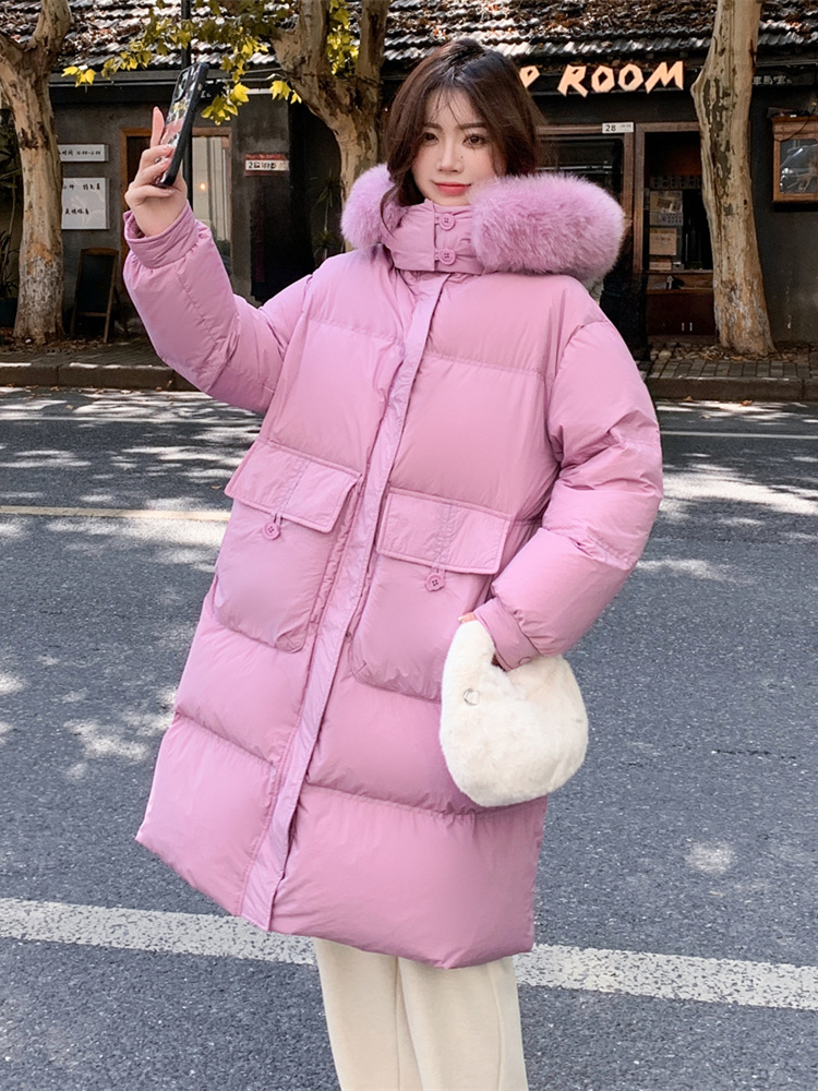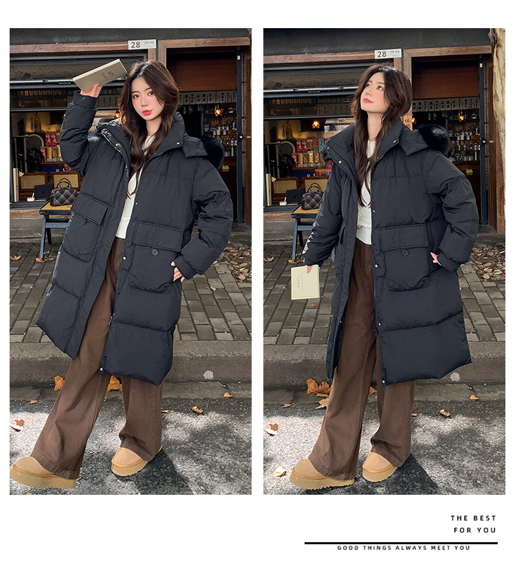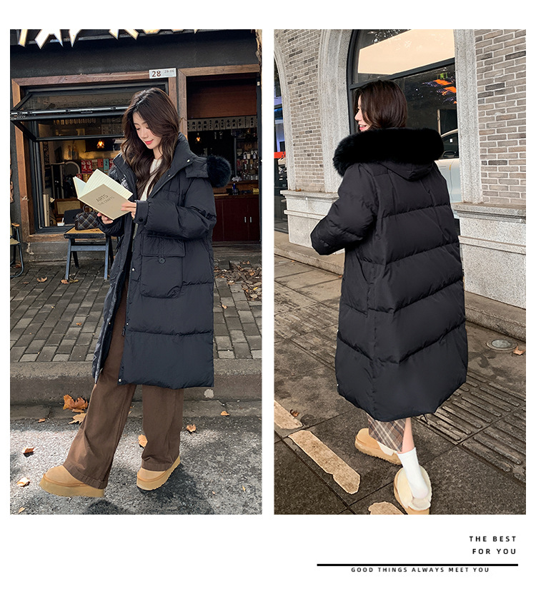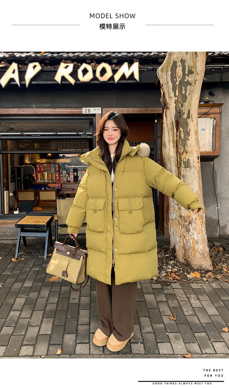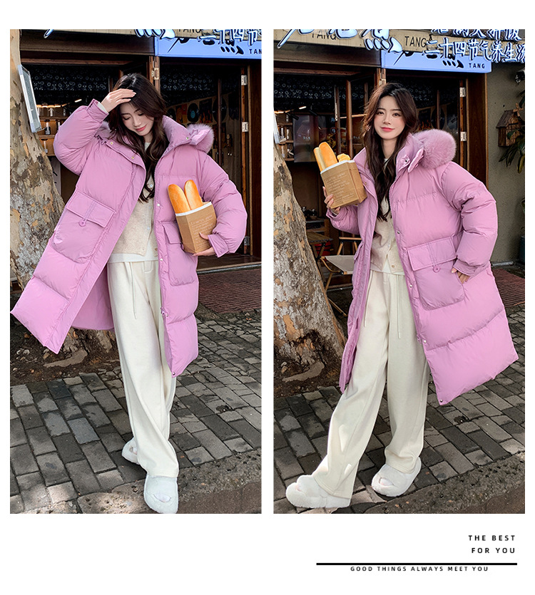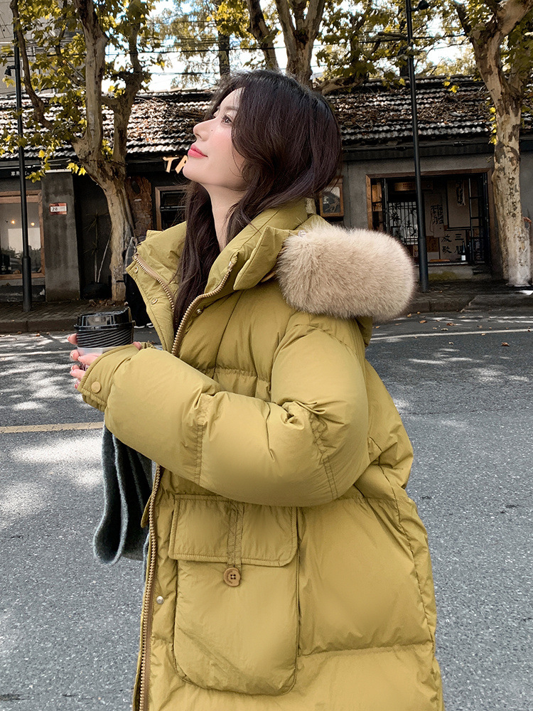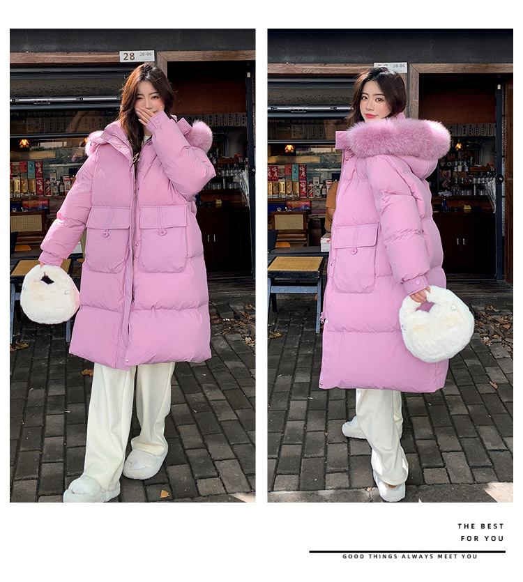 Пуховик 2025 года, удлиненный, очень большой размер, для полных женщин (размер 100kg и выше), приталенный, с капюшоном и воротником из меха лисы, модель 227