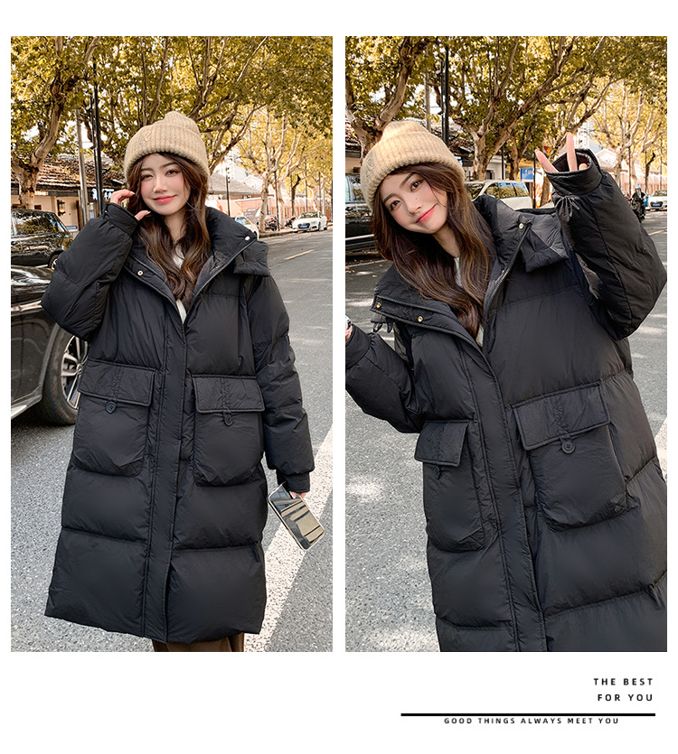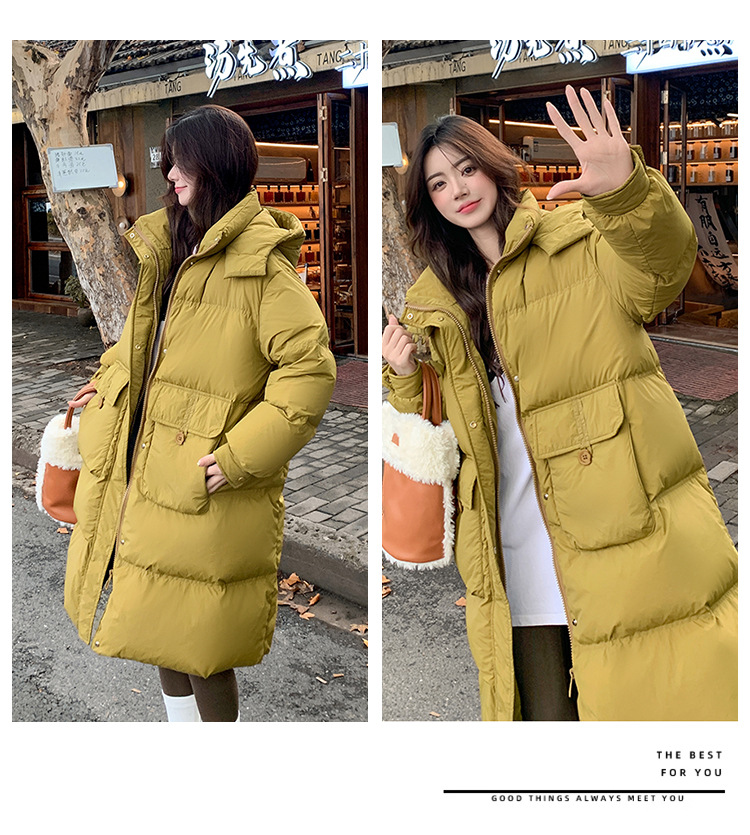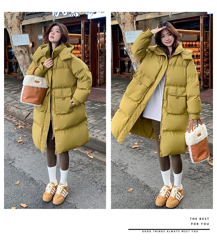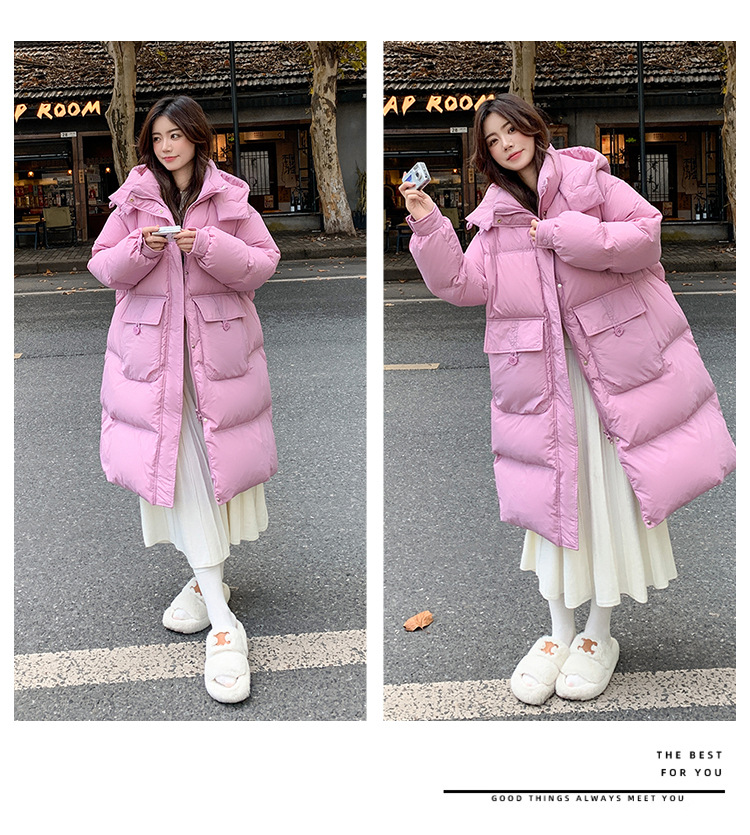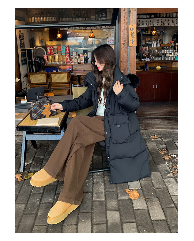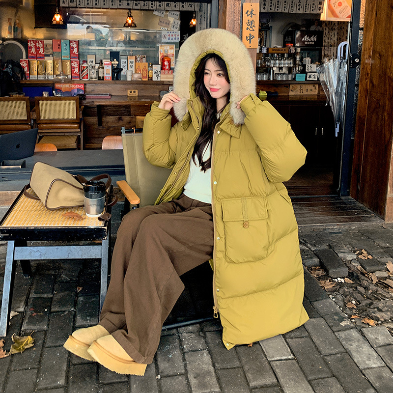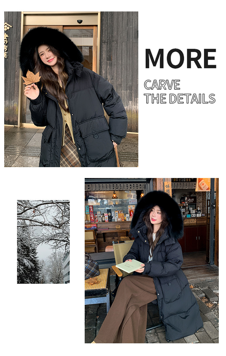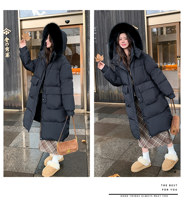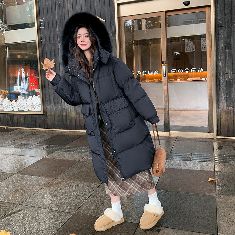 Пуховик 2025 года, удлиненный, очень большой размер, для полных женщин (размер 100kg и выше), приталенный, с капюшоном и воротником из меха лисы, модель 227