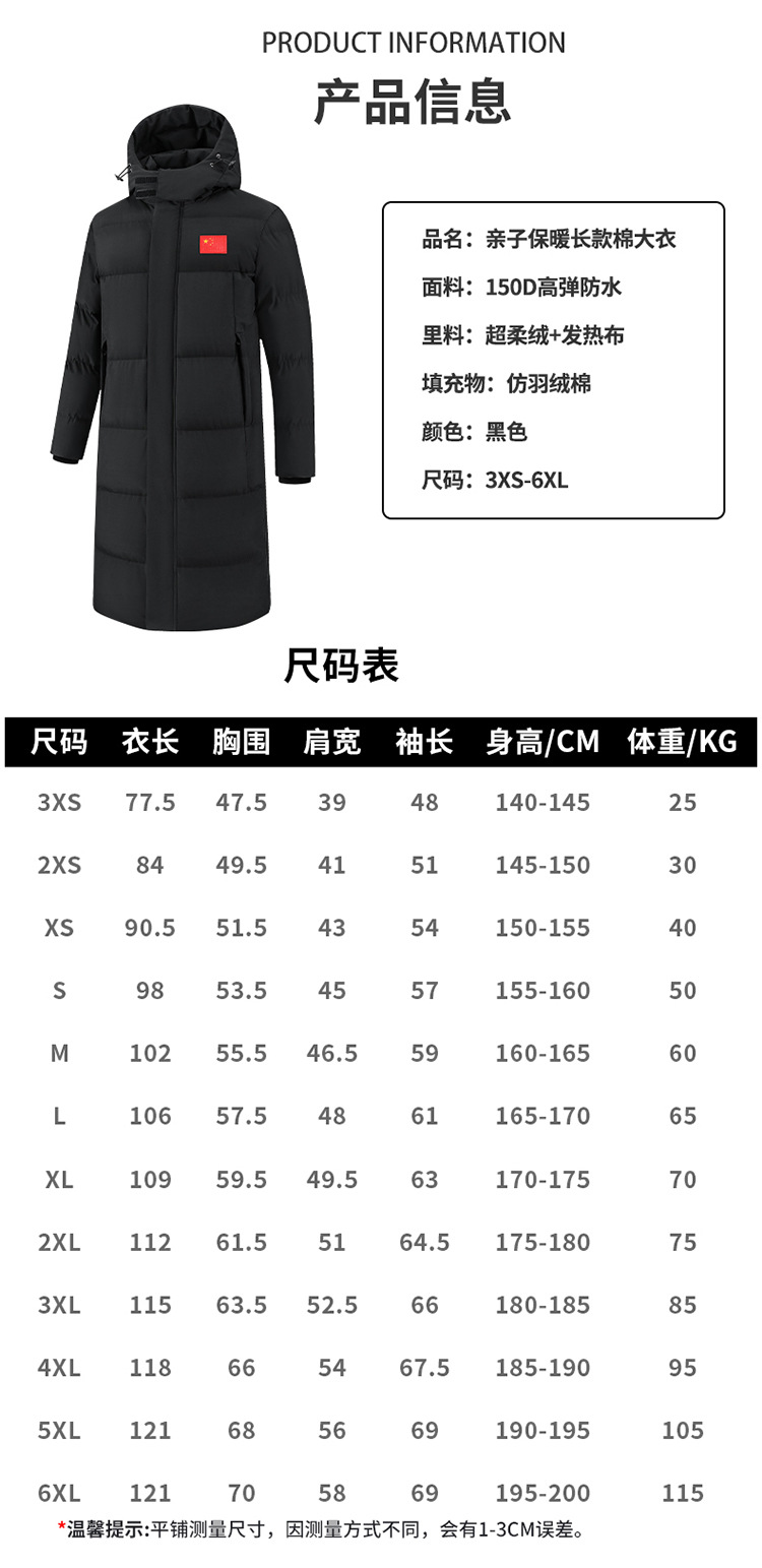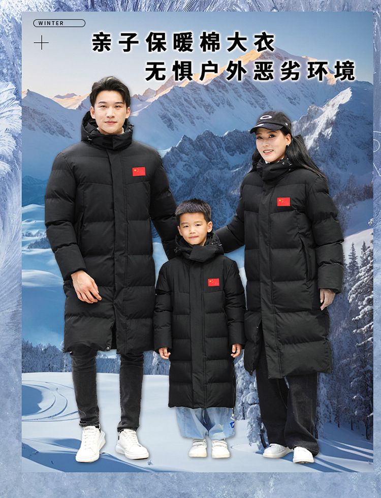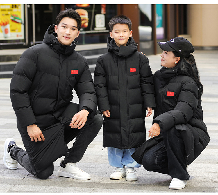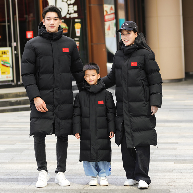 Зимняя тренировка пуховая хлопчатобумажная одежда китайской команды хлопчатобумажная одежда родитель-ребенок спортивная куртка длинная хлопковая куртка