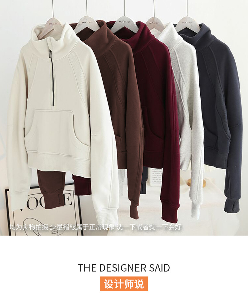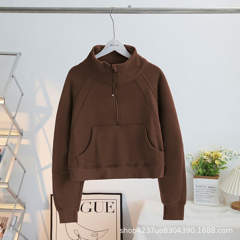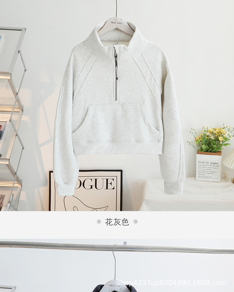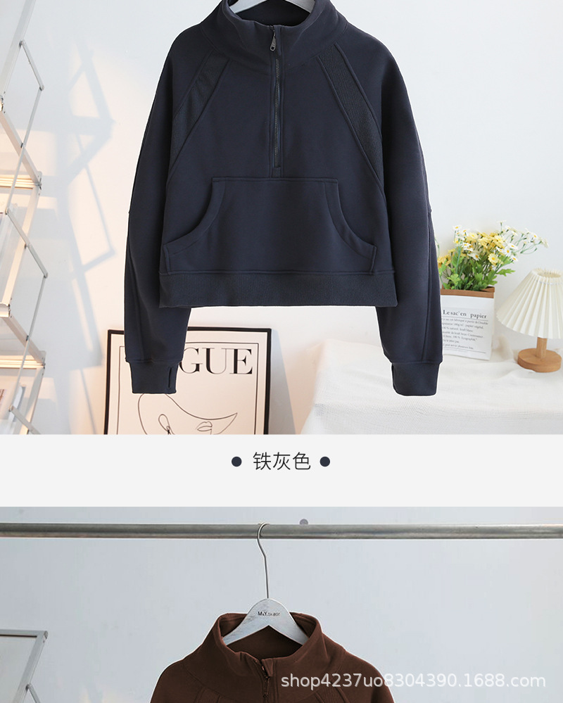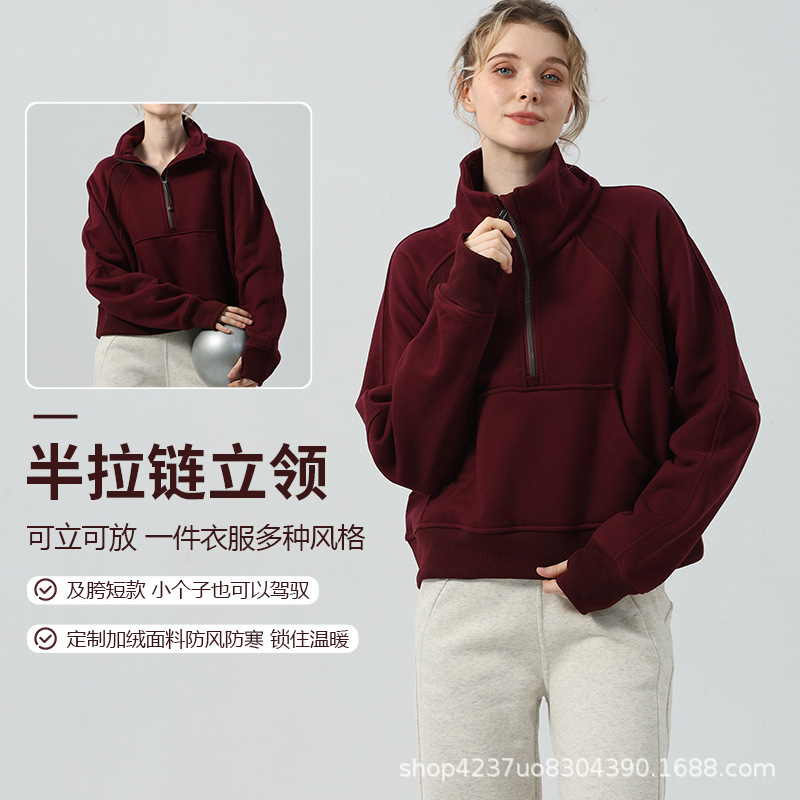 Lulu той же осенью и зимой бархатный толстый Scuba короткий воротник свободный дикий спортивный йога куртка для женщин