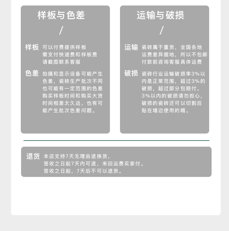 50*200-Античная имитация старой поверхности слегка дугообразный край цена за одну штуку; 50*200-матовая роликовая поверхность, кромка микродуга, цена за одну штуку; 50*200-машинная режущая и шлифовальная поверхность, кромка микродуга, цена за одну штуку; 50*200-добавлеемая сетка для спины по каждой доступной цене.; 50*200-Добавлено водонепроницаемое и противообрастающее покрытие по доступной цене.; Минимальная партия – 5 коробок. Пожалуйста, свяжитесь со службой поддержки клиентов при размещении заказа. Приоритет будет предоставлен после сбора.