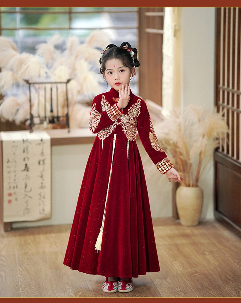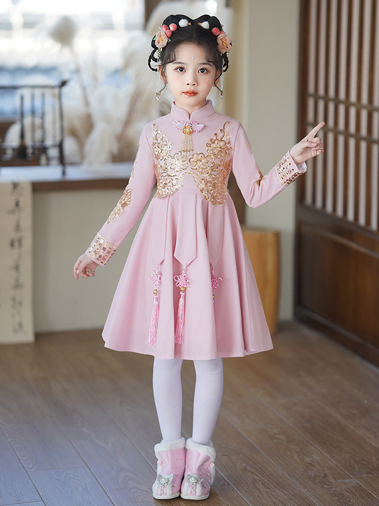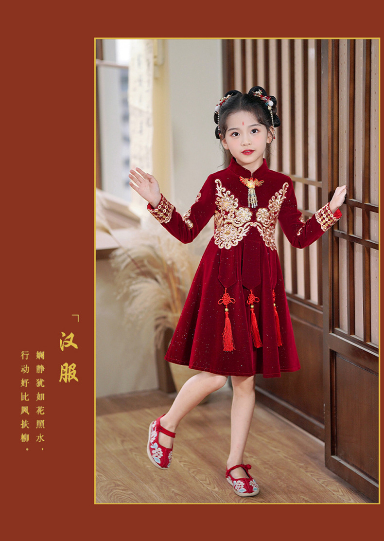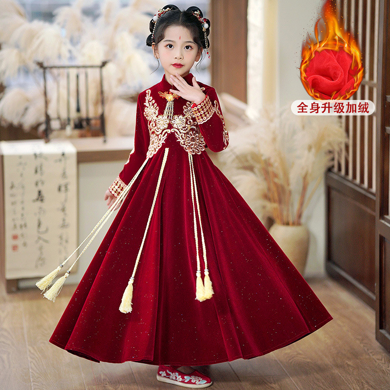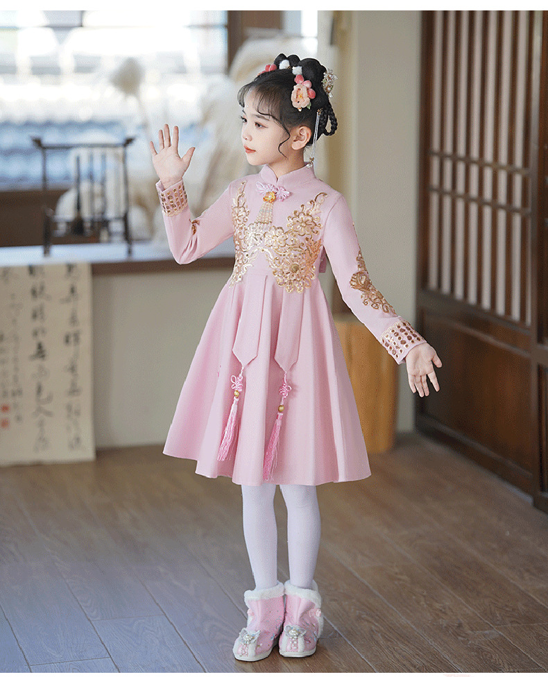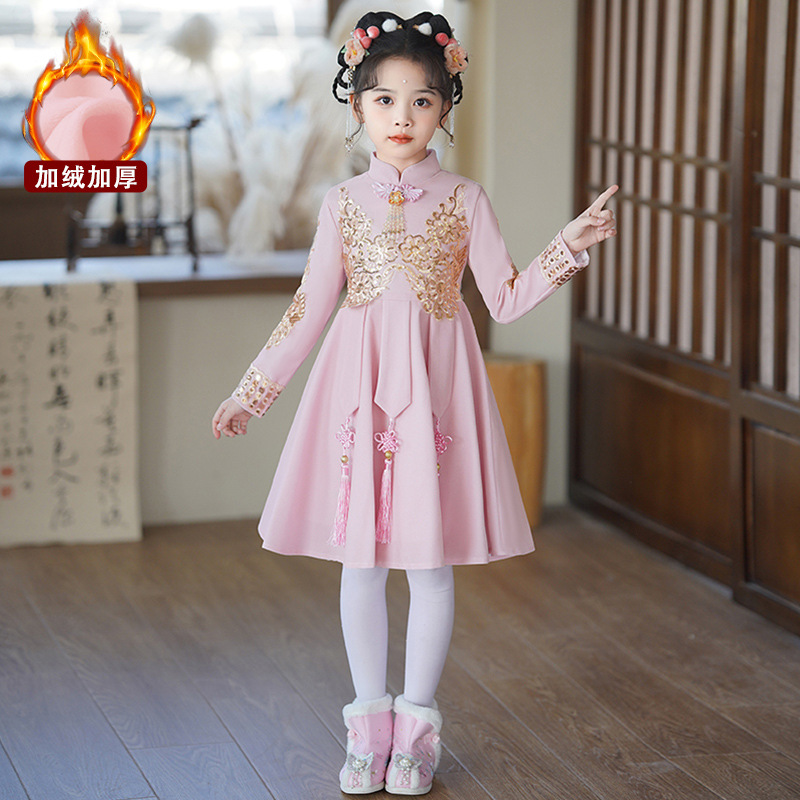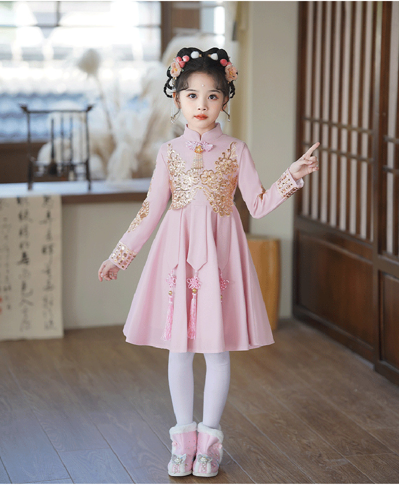 Новогоднее платье в древнем стиле для маленькой девочки, зимнее платье с вышивкой пайетками для девочек, детский китайский костюм Тан Хань