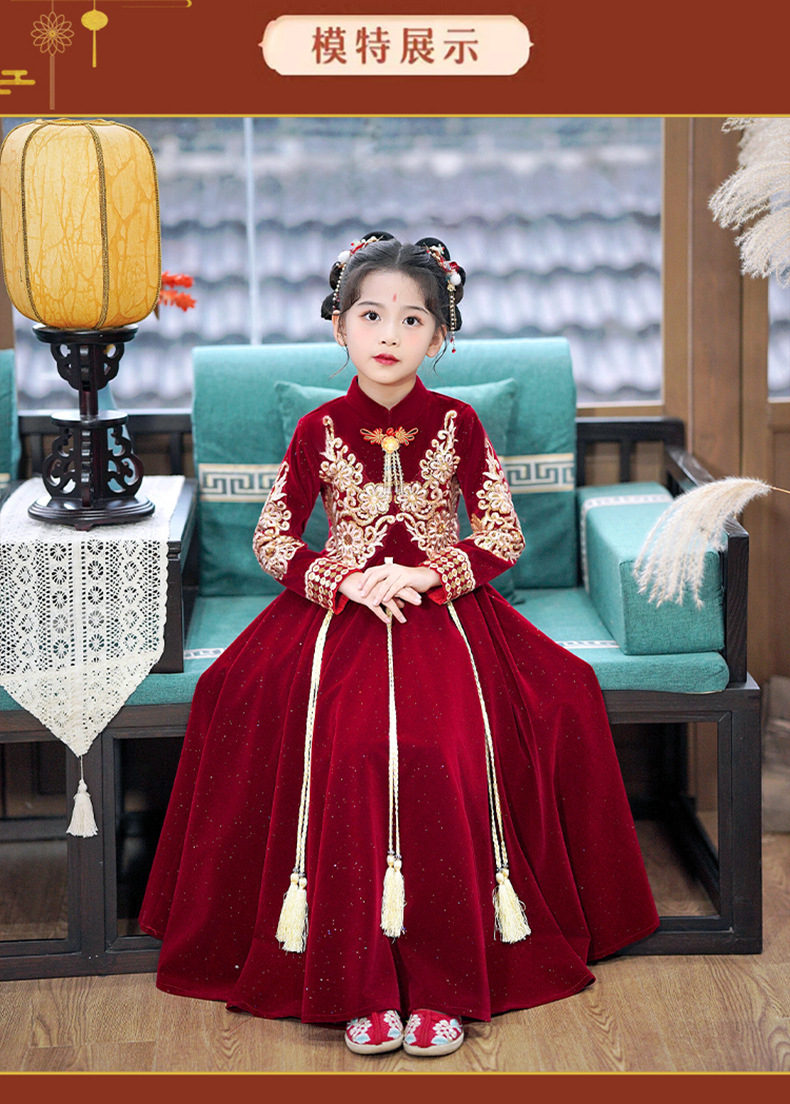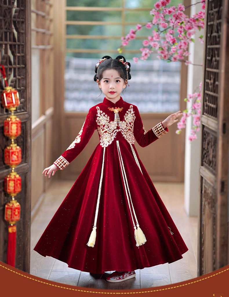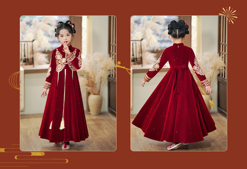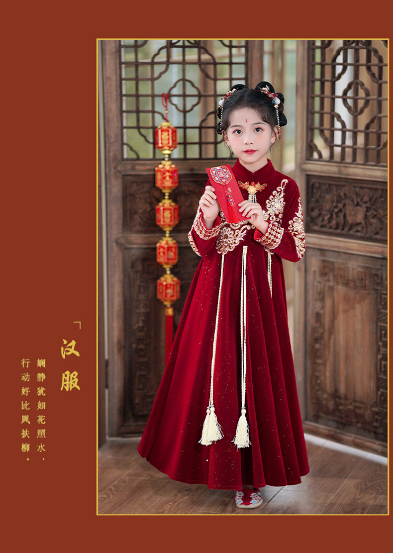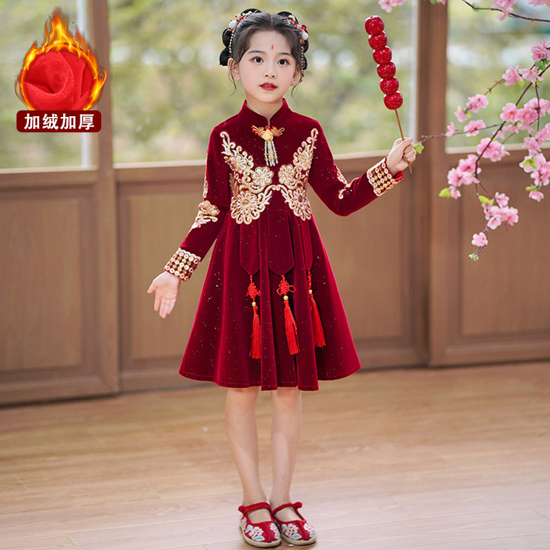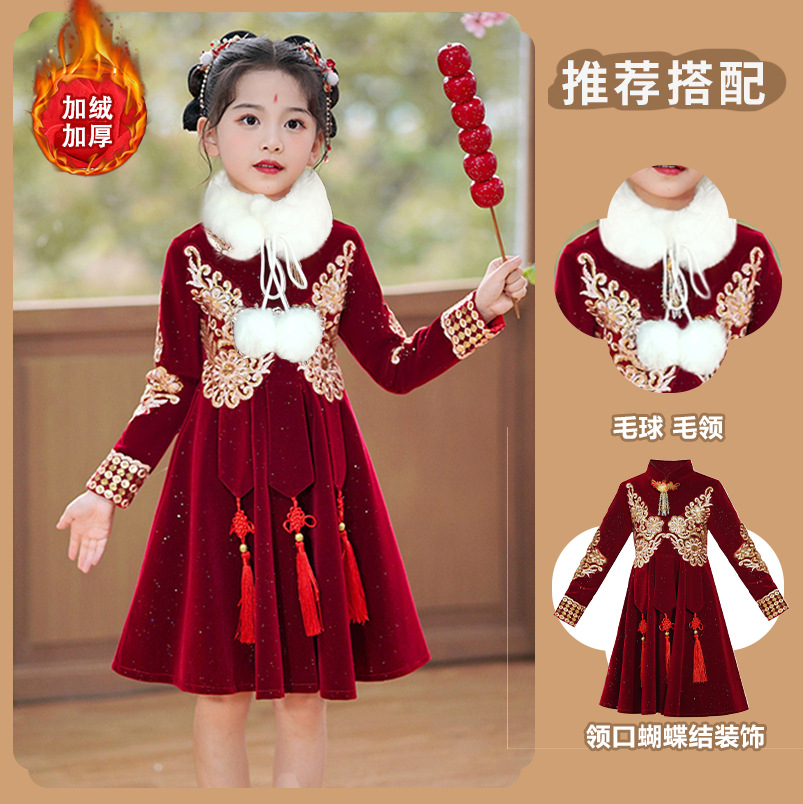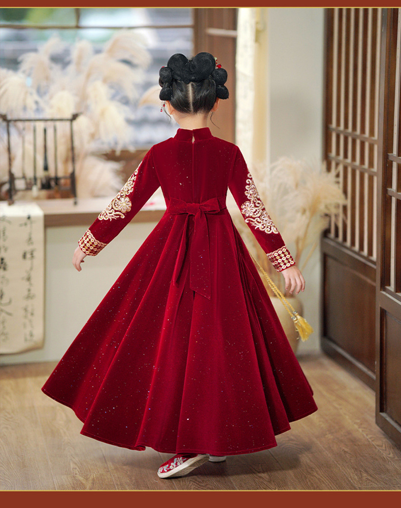 Новогоднее платье в древнем стиле для маленькой девочки, зимнее платье с вышивкой пайетками для девочек, детский китайский костюм Тан Хань