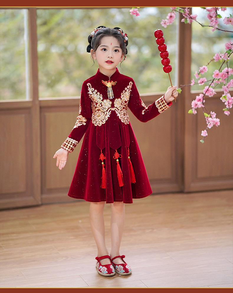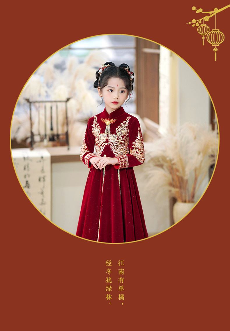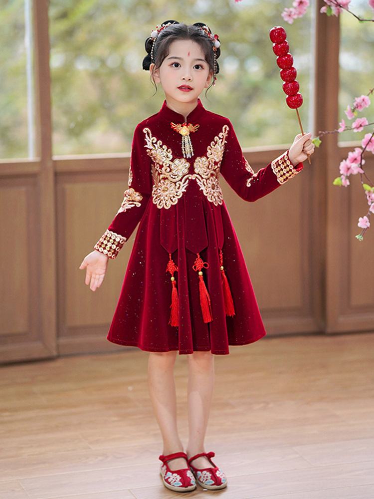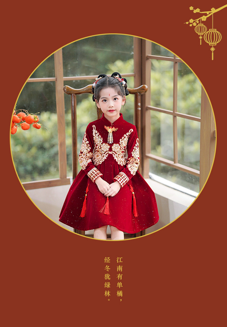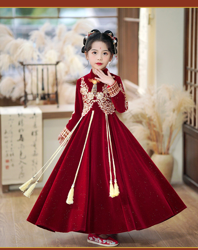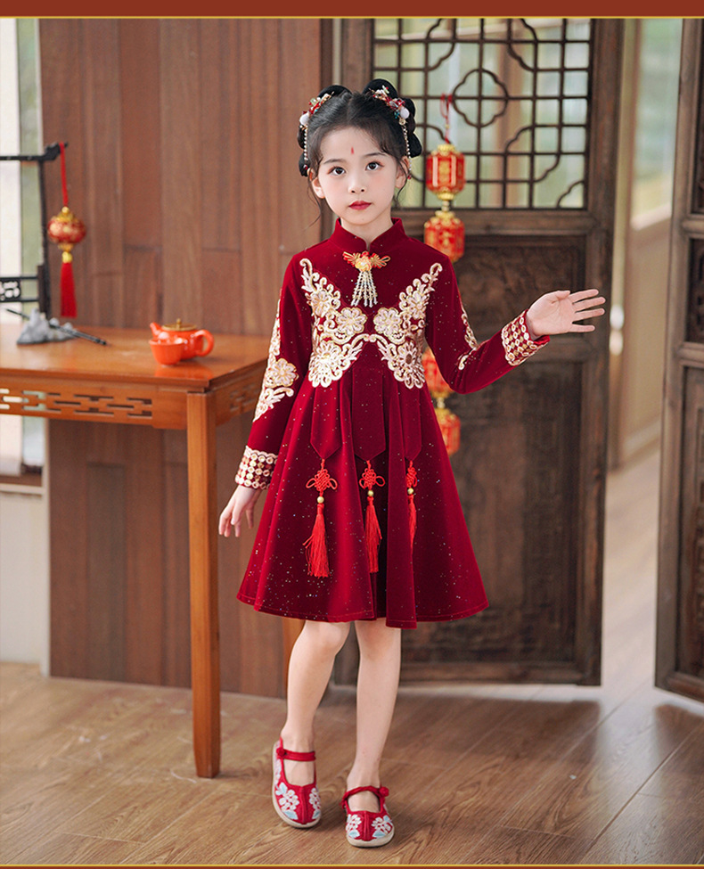 Новогоднее платье в древнем стиле для маленькой девочки, зимнее платье с вышивкой пайетками для девочек, детский китайский костюм Тан Хань
