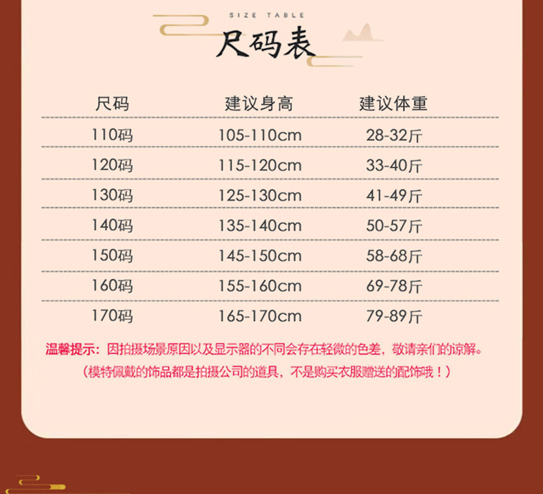 110cm; 120cm; 130cm; 140cm; 150cm; 160cm; 170cm