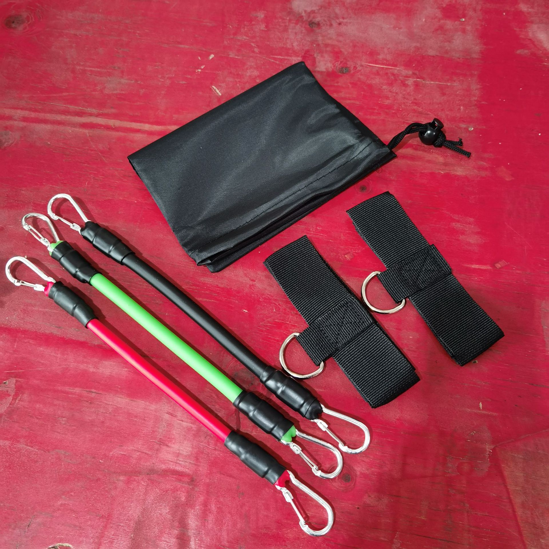 Черный одиночный 30 фунтов; Красный одинарный корень 15 фунтов; Флуоресцентный зеленый одиночный 25 фунтов; Голубое озеро, одиночное 20 фунтов; Желтый одиночный корень 10 фунтов; пять; Костюм; сумка для хранения; Красные, зеленые и черные 3 полосы + 2 накладки на ножки