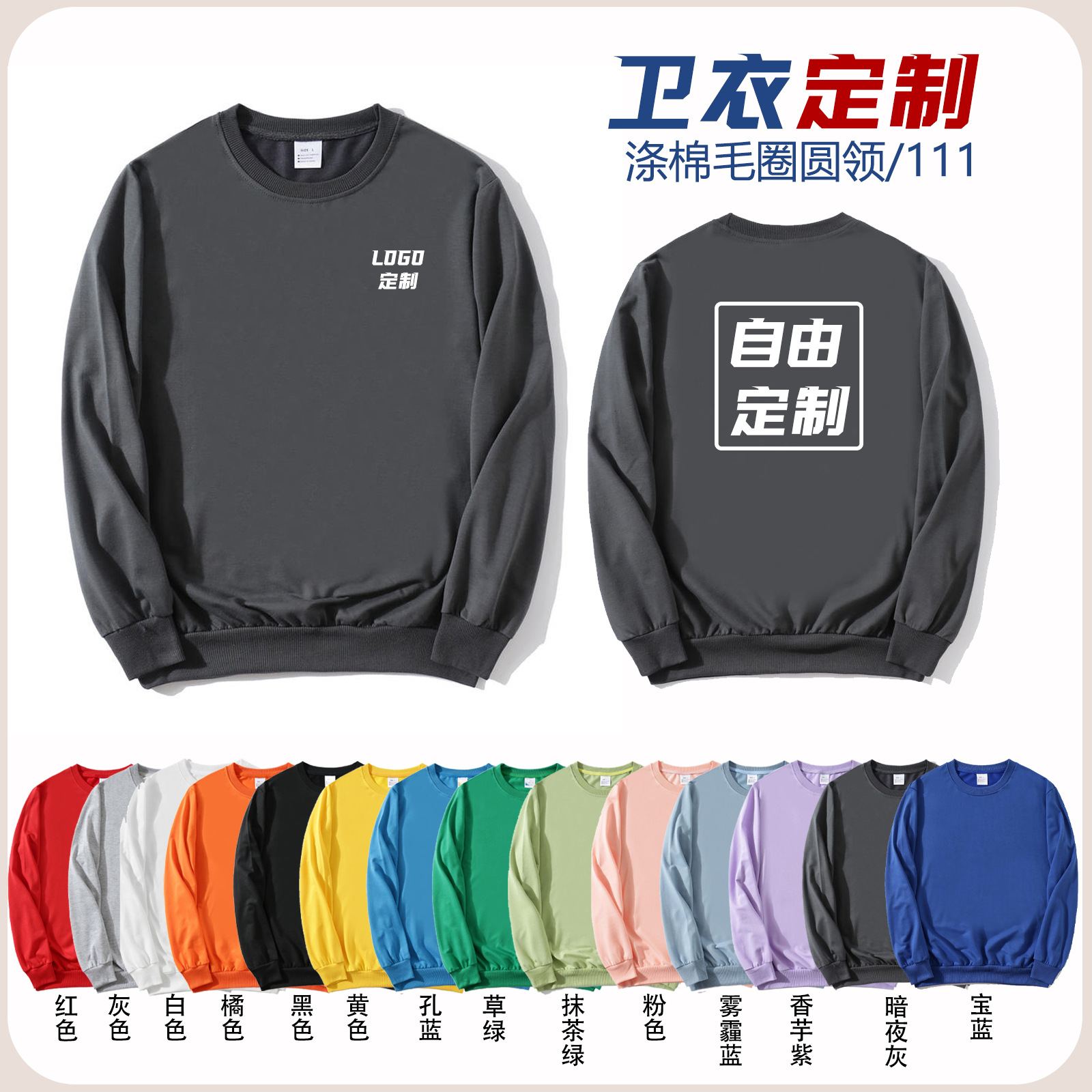 Толстовка с индивидуальным принтом, флисовая подкладка, пуловер с круглым вырезом, хлопковая куртка, оптовая печать логотипа на заказ