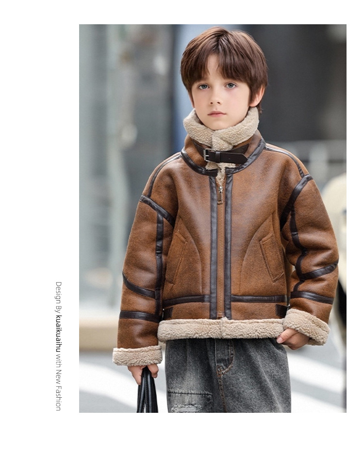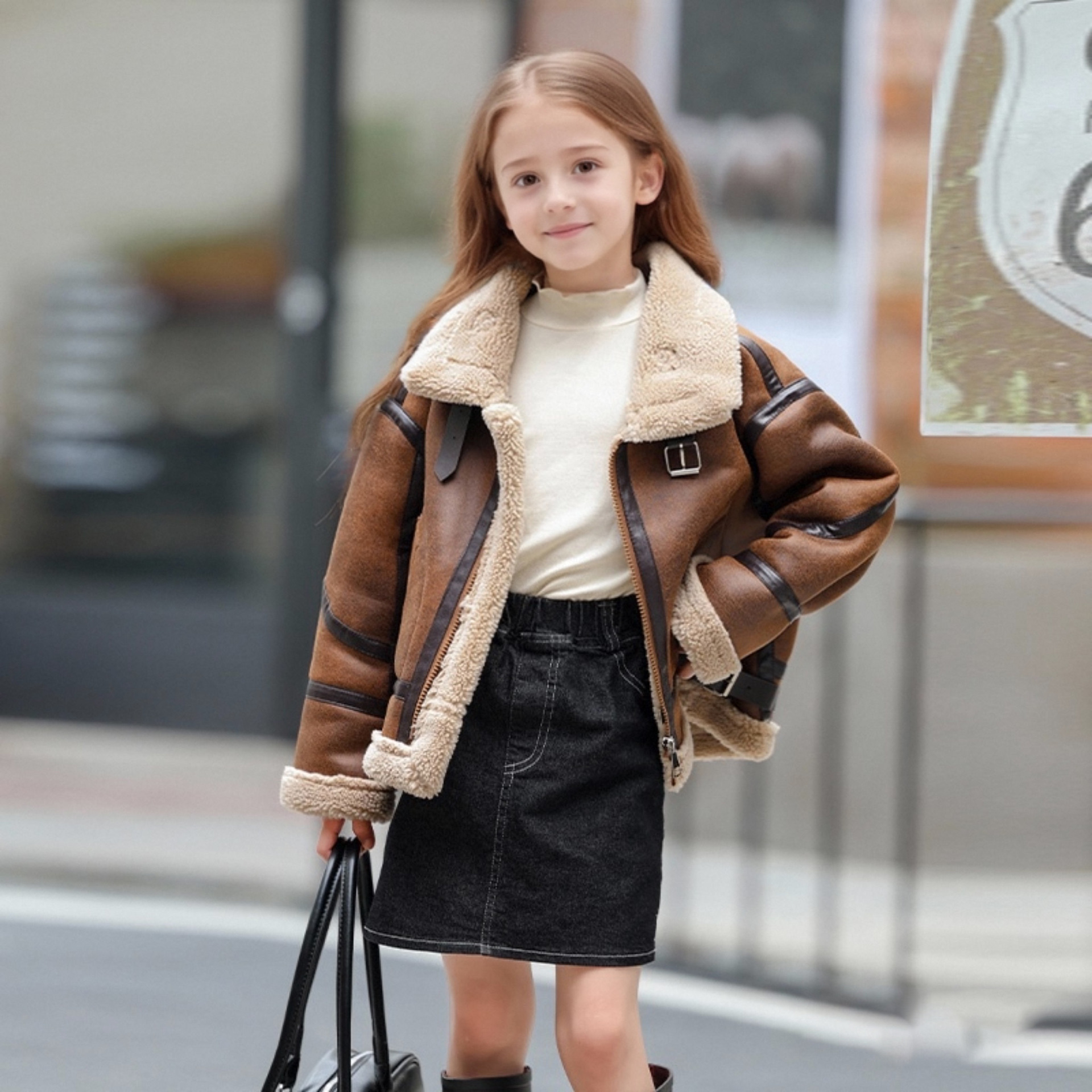 Замшевая куртка 2026: осенне-зимняя модель, детская унисекс-куртка из кожи, утепленное пальто для девочек на меху