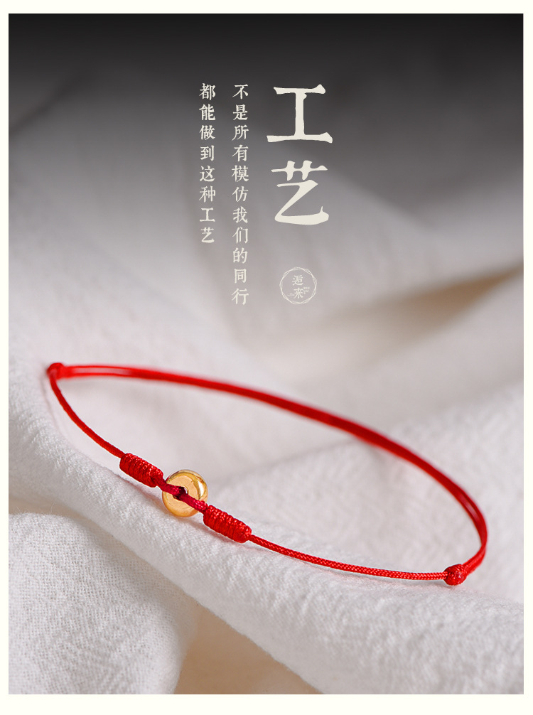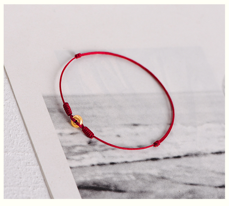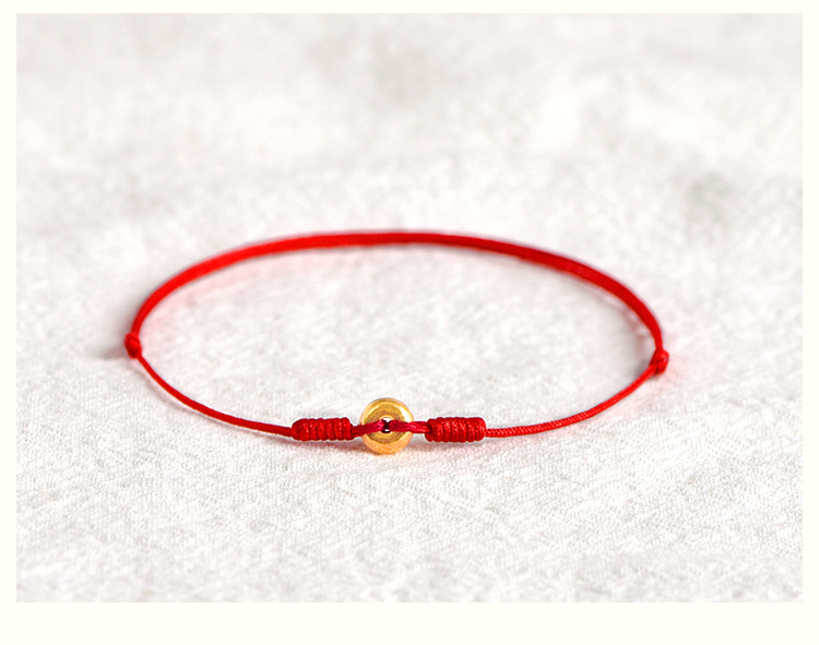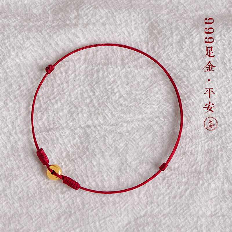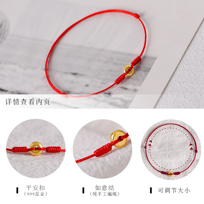 S999 браслет-браслет из чистого золота с защитной пряжкой и красной веревкой для женщин, чрезвычайно тонкий, год зодиака змеи, браслет из чистого золота с бусинами