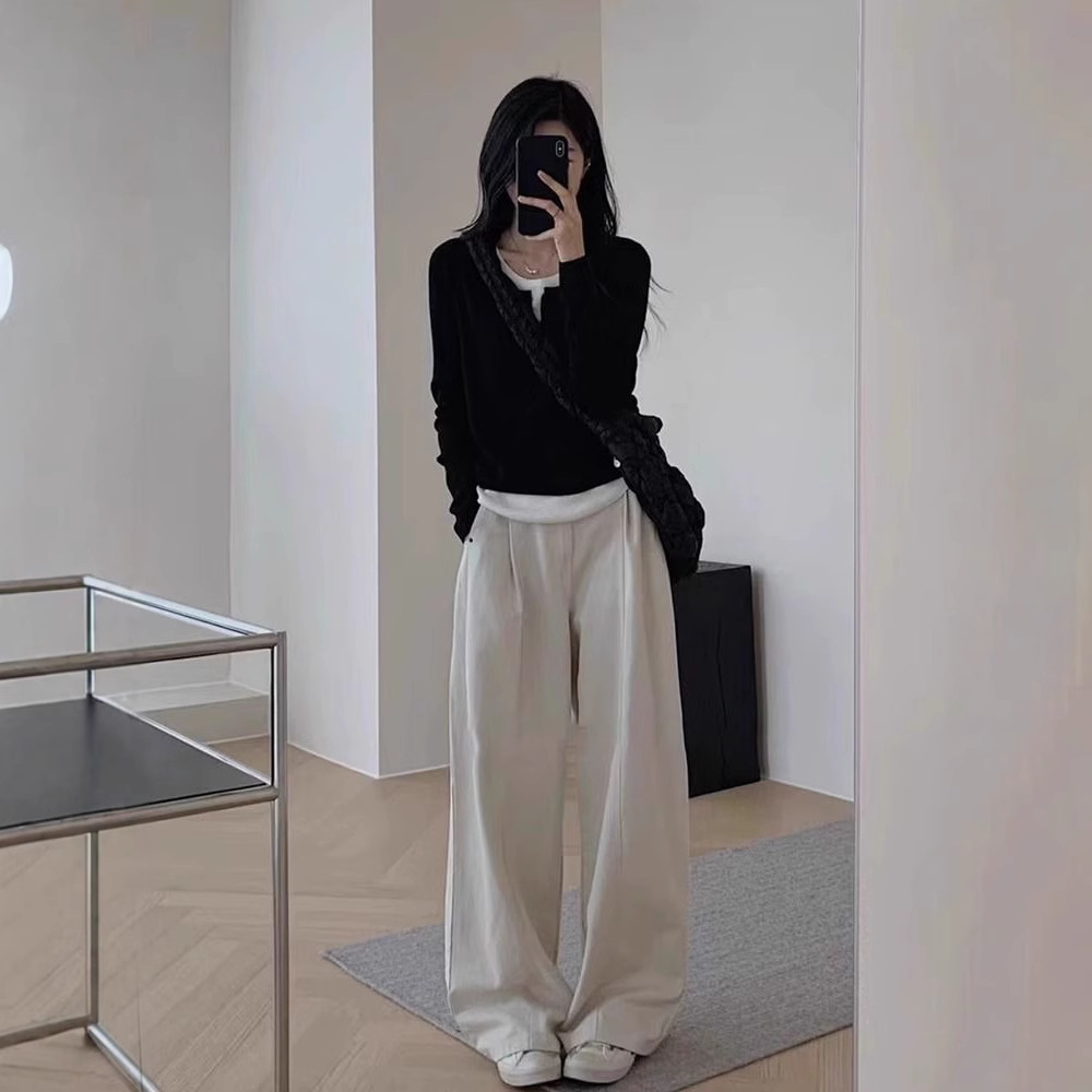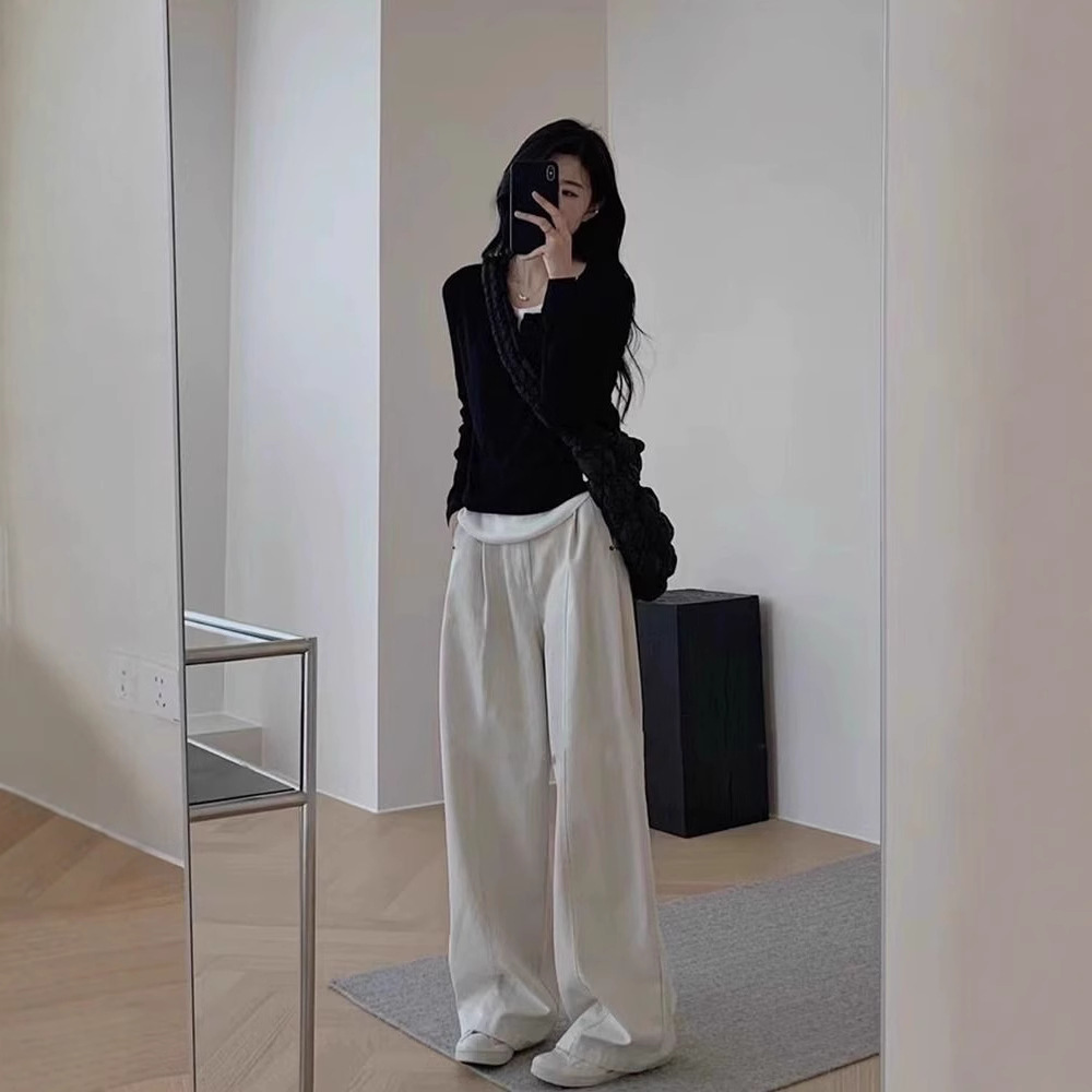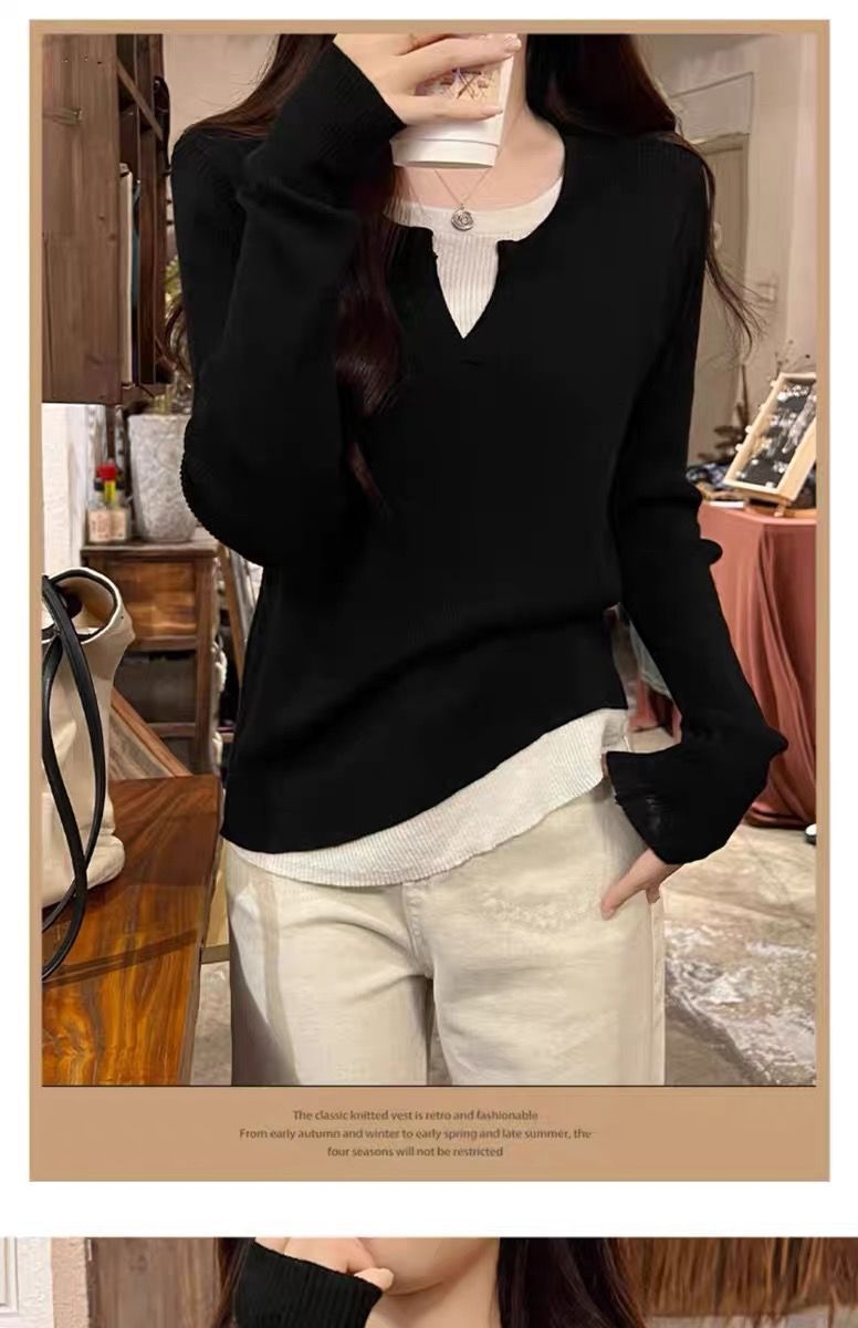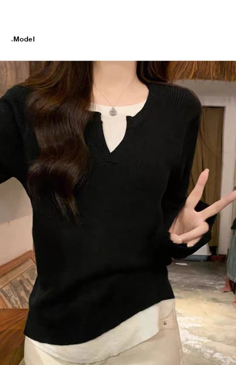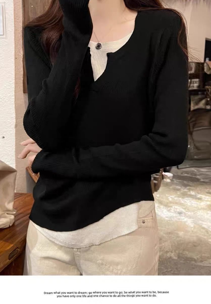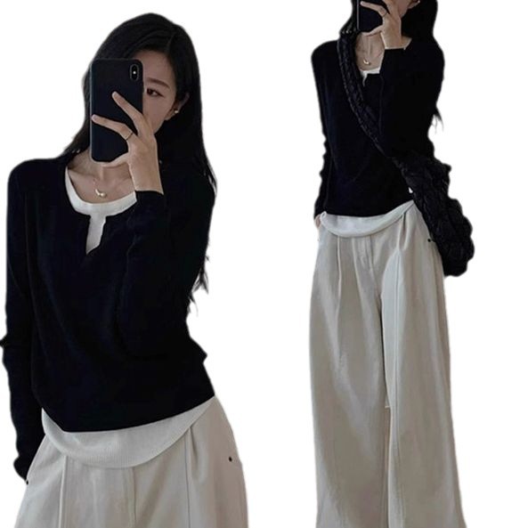 Черная женская футболка с длинным рукавом, имитация двухслойного дизайна, весенний корейский стиль, асимметричные вставки, облегающий крой, базовая футболка, топ в стиле INS для женщин.
