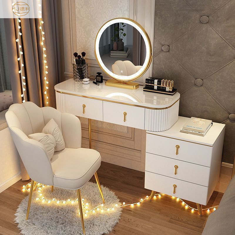 Туалетный столик для дома и спальни из массива дерева, с отсеками для хранения косметики, в стиле легкой роскоши, мини-туалетный столик, выдвижной шкафчик для косметики