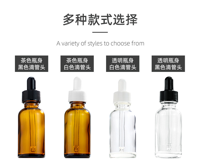 Прозрачная бутылка + белый кончик-капельница; Прозрачная бутылка + черный кончик-капельница; Коричневая бутылка + черный кончик-капельница; Коричневая бутылка + белый кончик-капельница; Матовая бутылка + белый наконечник-дозатор; Синяя бутылка + белый наконечник-дозатор; Синяя бутылка + черный наконечник-дозатор; Матовая бутылка + черный наконечник-дозатор