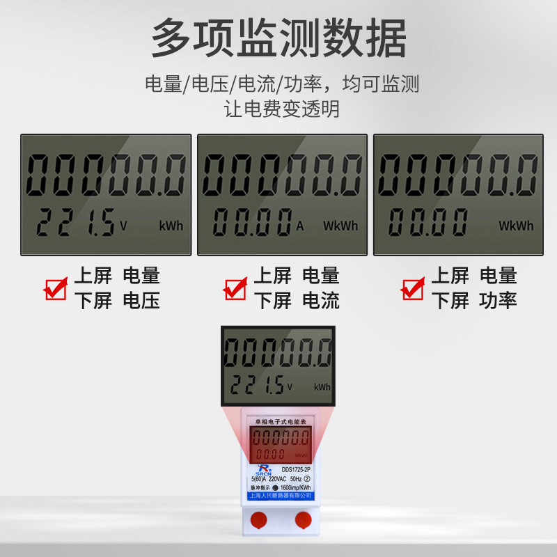 Однофазный счетчик на DIN-рейку, мультиметрного типа, специальный компактный умный счетчик электроэнергии для арендного жилья, малый счетчик электроэнергии 220В