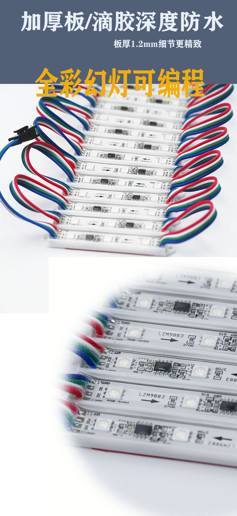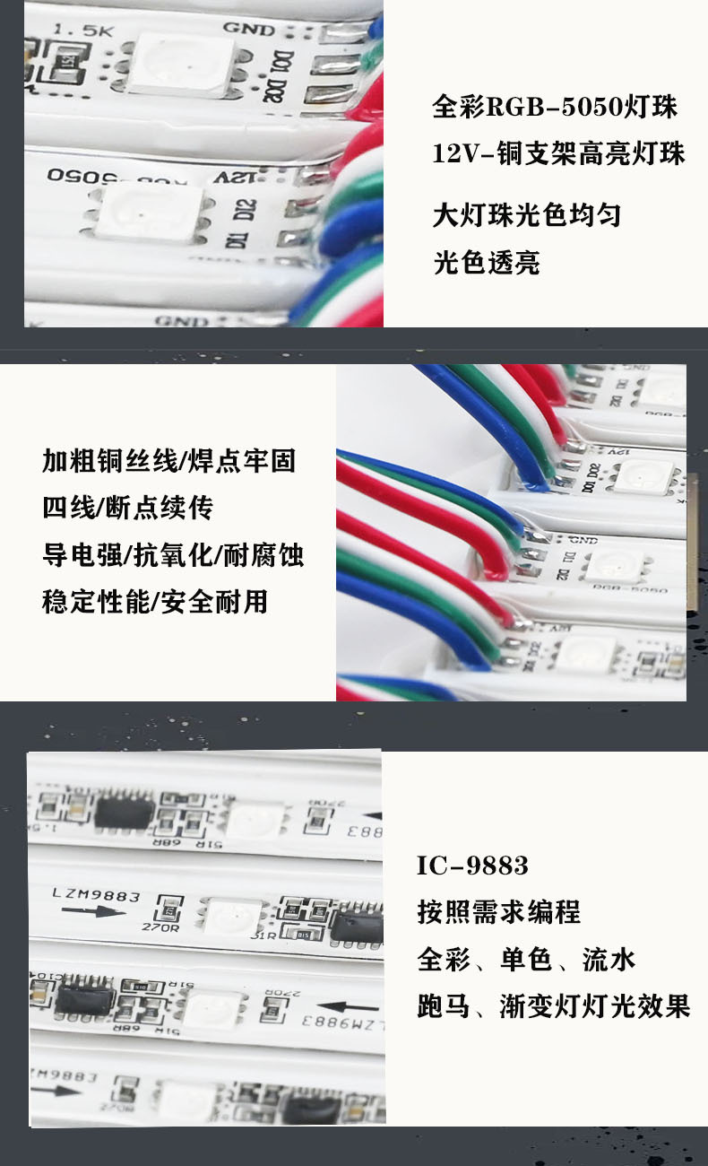 Модуль светодиодов LED5050, лампы-чипы, литье под давлением, RGB, светящиеся рекламные буквы, мягкая пленка, 12В, источник света для световых коробов, высокая яркость, водонепроницаемый