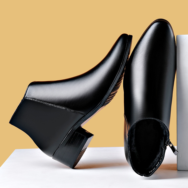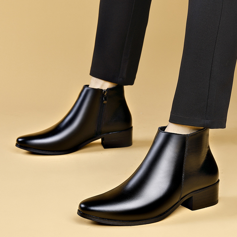 Кожаные сапоги челси мужские корейские бизнес-ботинки на высоком каблуке