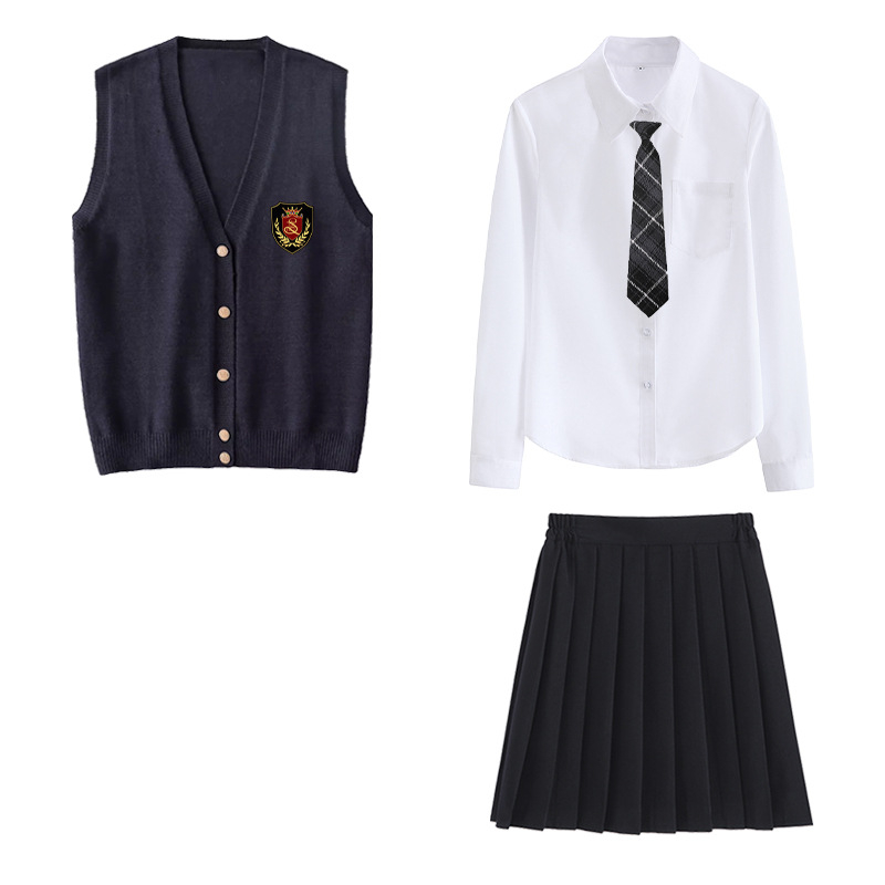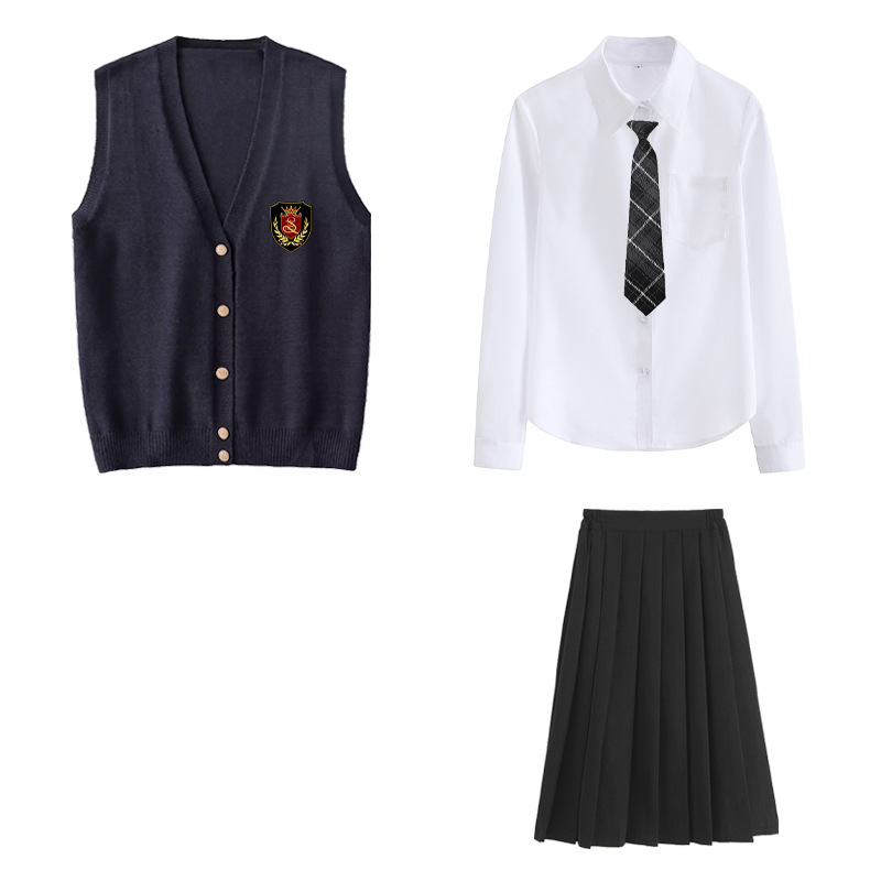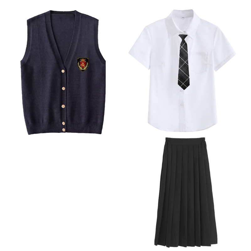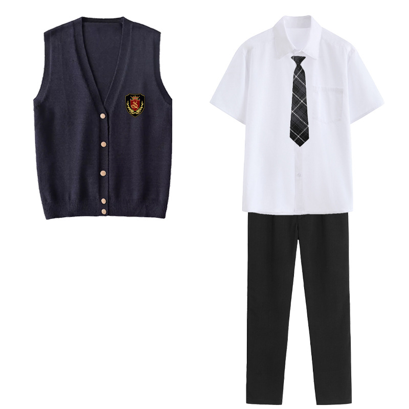 Жилет для девочек; жилет для мальчиков; Жилет для девочки + значок; Жилет для мальчика + значок; Короткие рукава для девочек + черная юбка + галстук + значок; Короткие рукава для девочек + черная юбка средней длины + галстук + значок; Короткие рукава для девочек + черная длинная юбка + галстук + значок; Длинные рукава для девочек + черная юбка + галстук + значок; Длинные рукава для девочек + черная средняя юбка + галстук + значок; Длинные рукава для девочек + черная длинная юбка + галстук + значок; Жилет для девочки + короткие рукава для девочек + черная юбка + галстук + значок; Жилет для девочки + короткие рукава для девочек + черная юбка средней длины + галстук + значок; Жилет для девочки + короткие рукава для девочек + черная длинная юбка + галстук + значок; Жилет для девочки + длинные рукава для девочек + черная юбка + галстук + значок; Жилет для девочки + длинные рукава для девочек + черная юбка средней длины + галстук + значок; Жилет для девочки + длинные рукава для девочек + черная длинная юбка + галстук + значок; Короткие рукава для мальчиков + черные брюки + галстук + значок; Мужские рукава для роста + черные брюки + галстук + значок; Жилет для мальчиков + короткие рукава для мальчиков + черные брюки + галстук + значок; Жилет для мальчиков + длинные рукава для мальчиков + черные брюки + галстук + значок