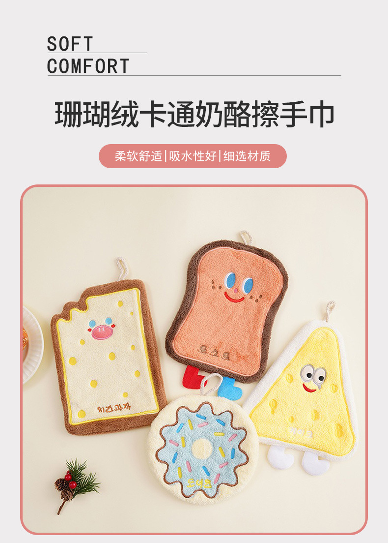 Коралловый бархат мультфильм сыр полотенце для рук утолщение впитывает воду Подвесная кухонная тряпка для ванной выпечки серии Маленькое полотенце