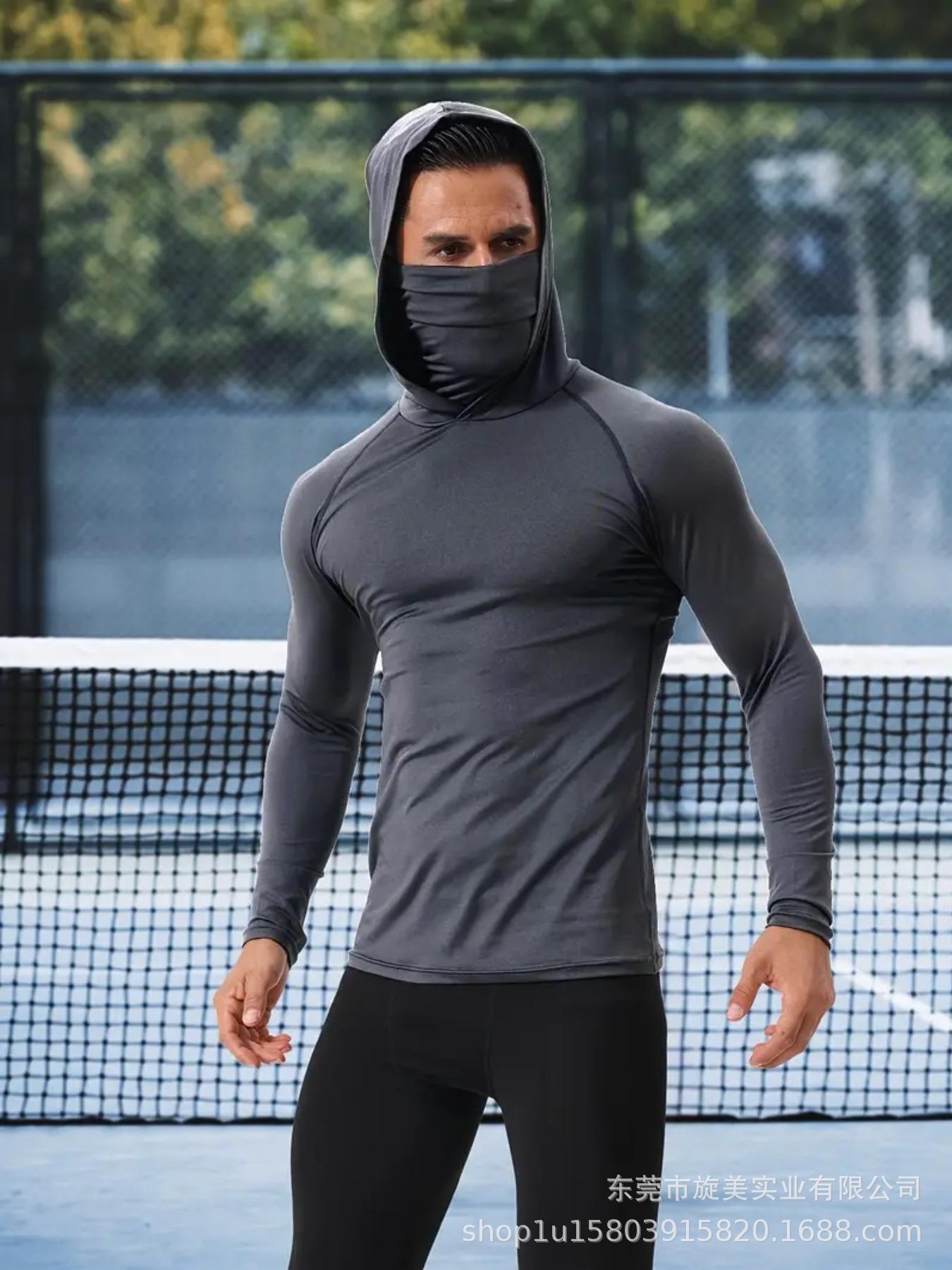 Европейские и американские размеры в наличии, спортивные на открытом воздухе, высокоэластичные, быстросохнущие, для езды на велосипеде, тренировочная плотная толстовка с капюшоном и длинными рукавами с высокой завязкой.