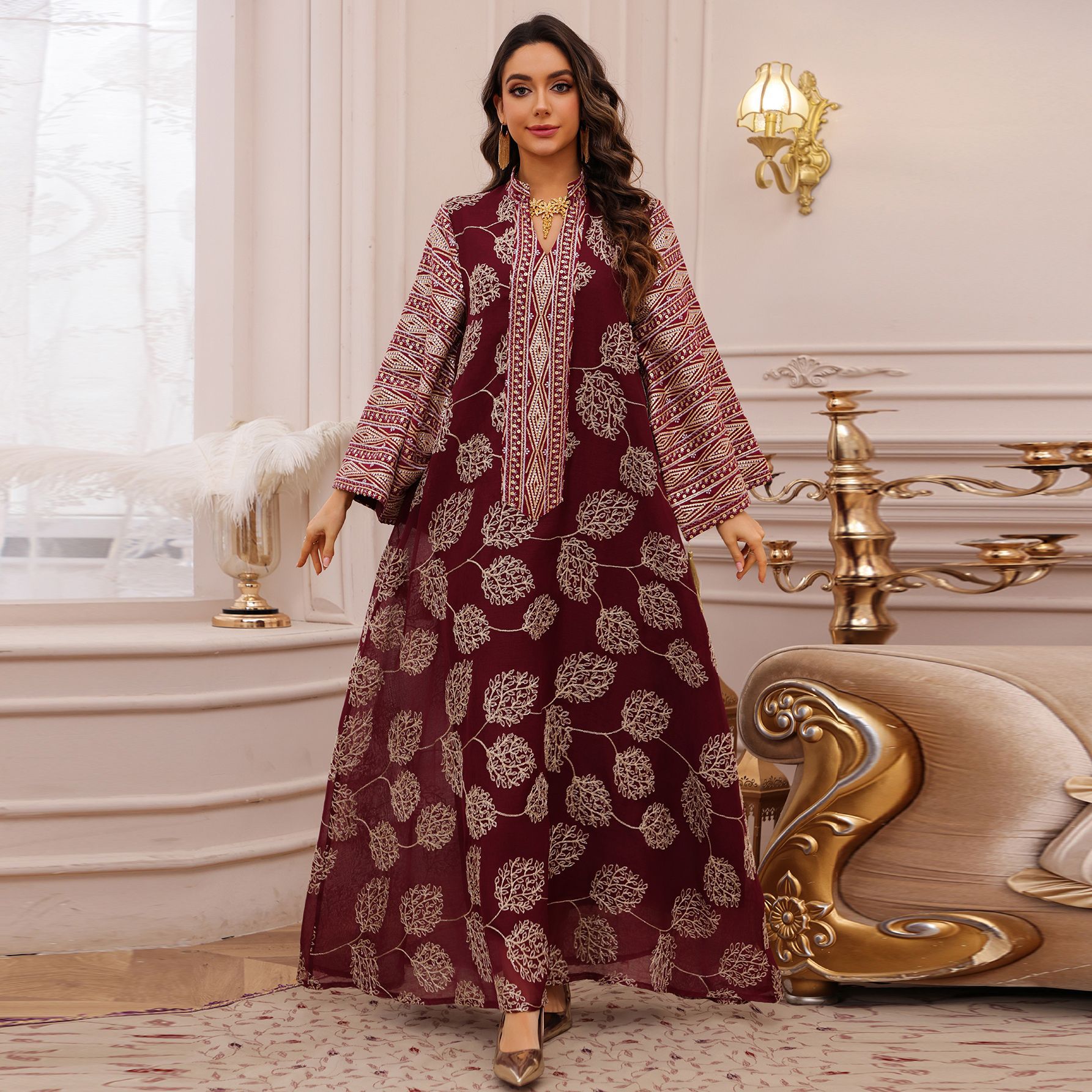 AB423 亚马逊穆斯林刺绣亮片长袍大码女装欧美跨境连衣裙中东新款