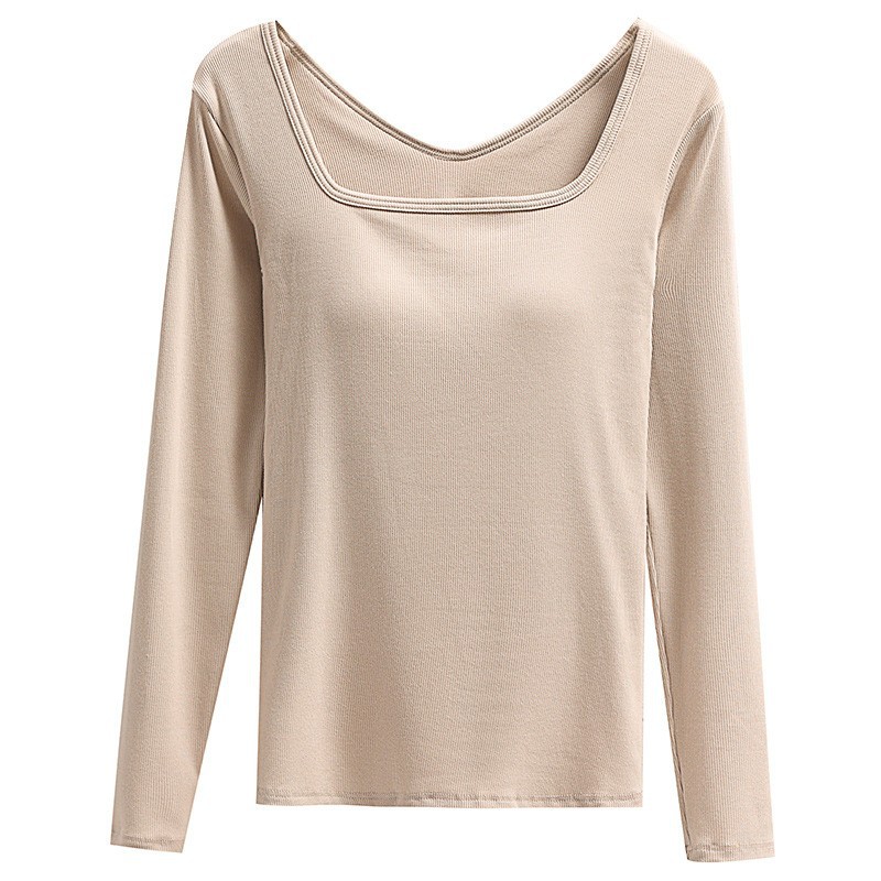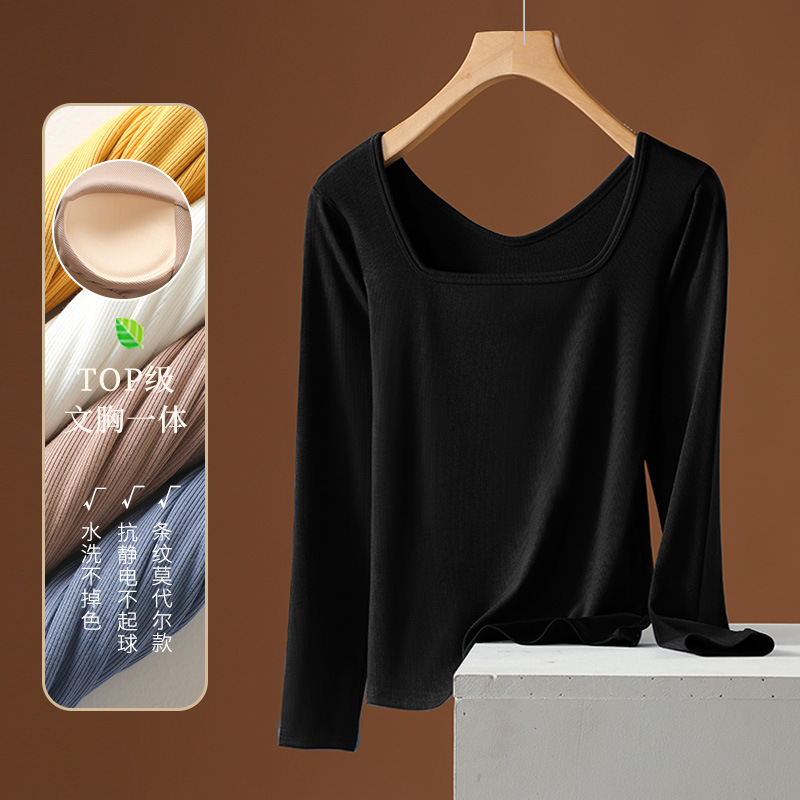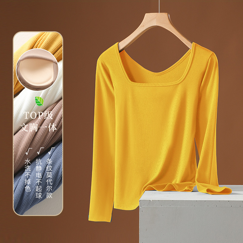 Модальный женский осенний топ с квадратным вырезом и встроенными чашками бюстгальтера, не требует ношения бюстгальтера, удобный и облегающий, для весны и осени.