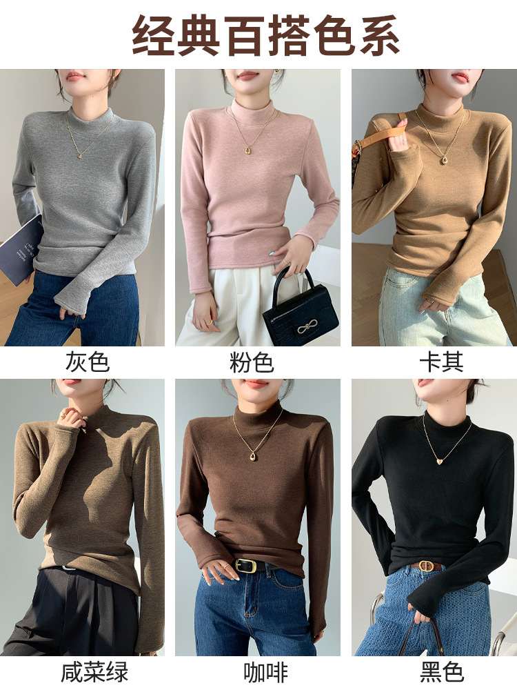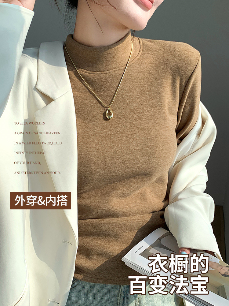 H252 кокосовый пух-кокосовый полувысокий воротник нижняя рубашка женская стройная, бархатная, толстая ветрозащитная, длинная рубашка с длинными рукавами осенью и зимой