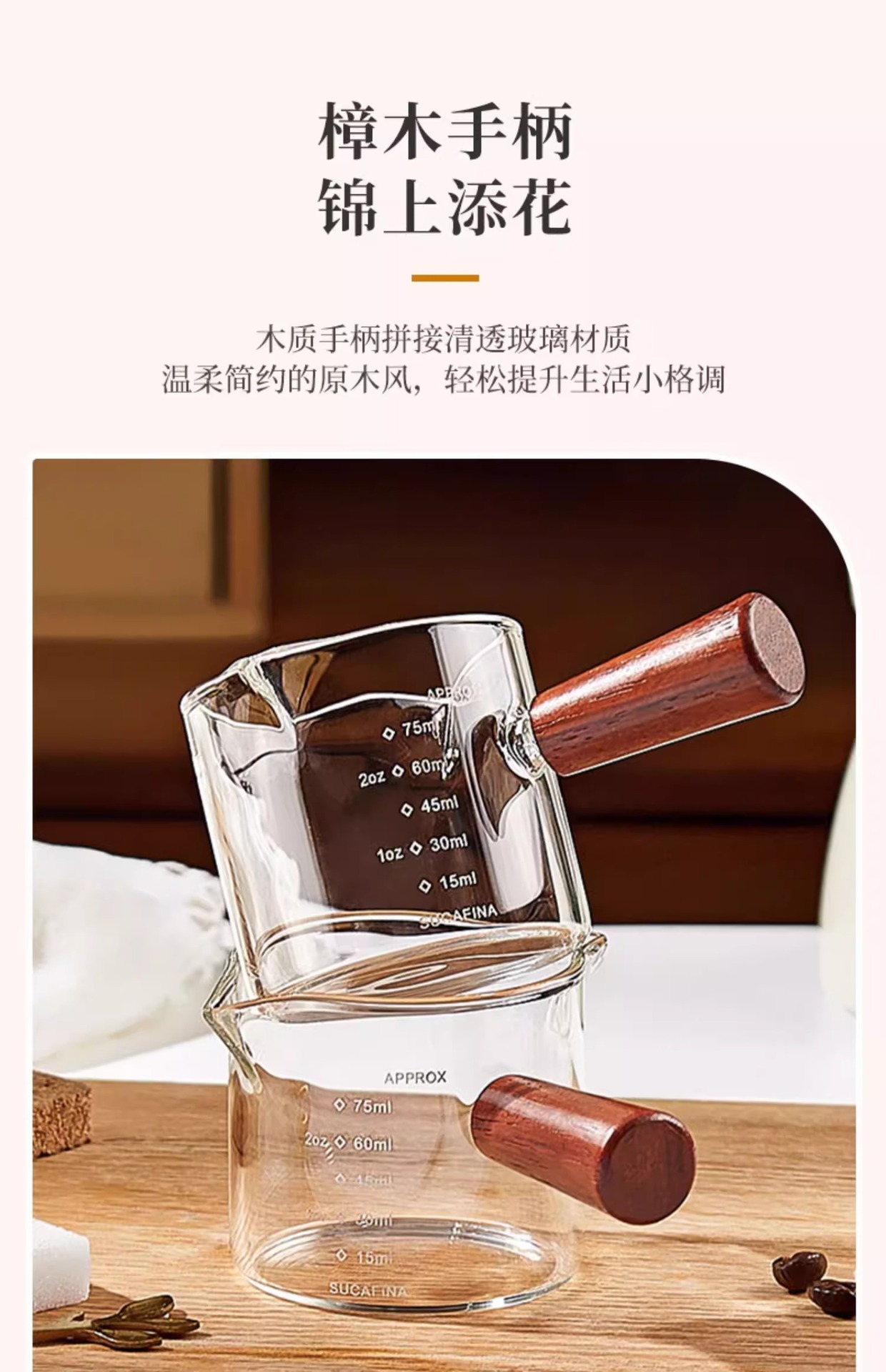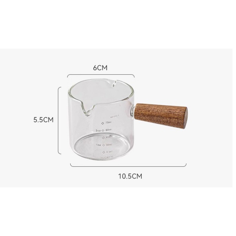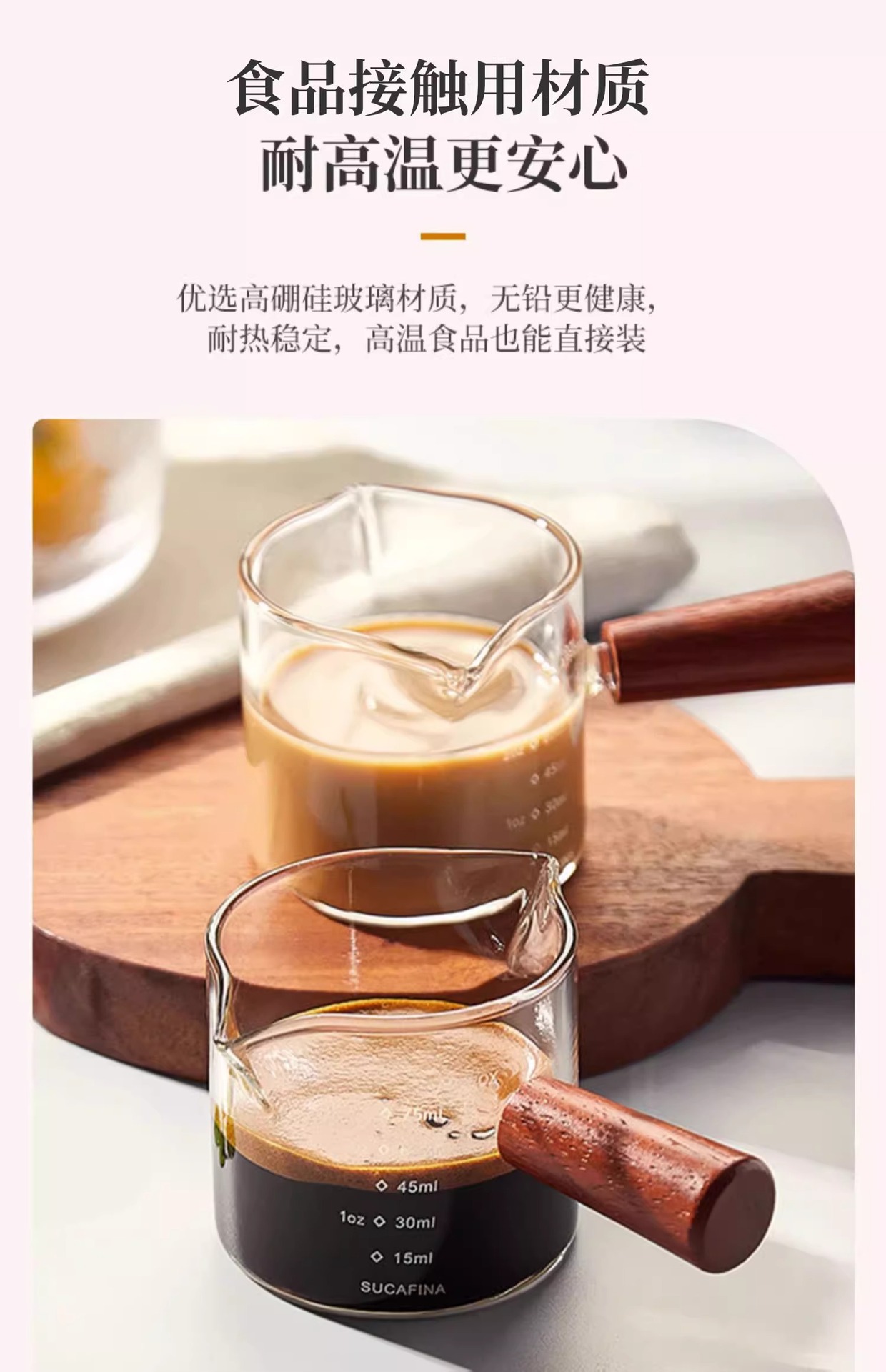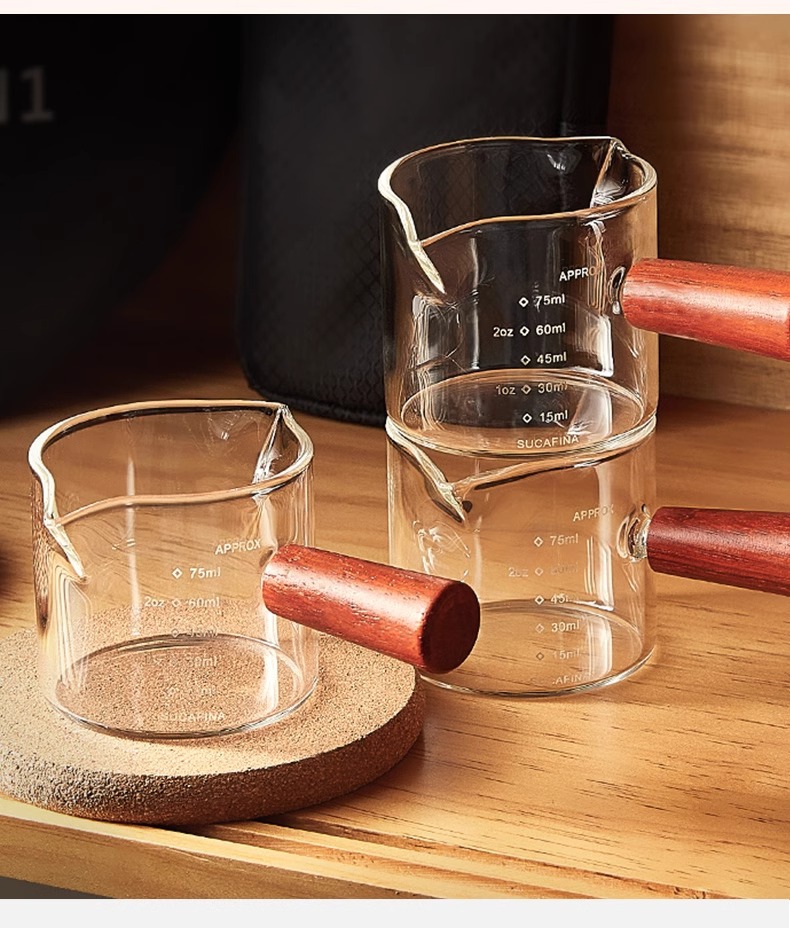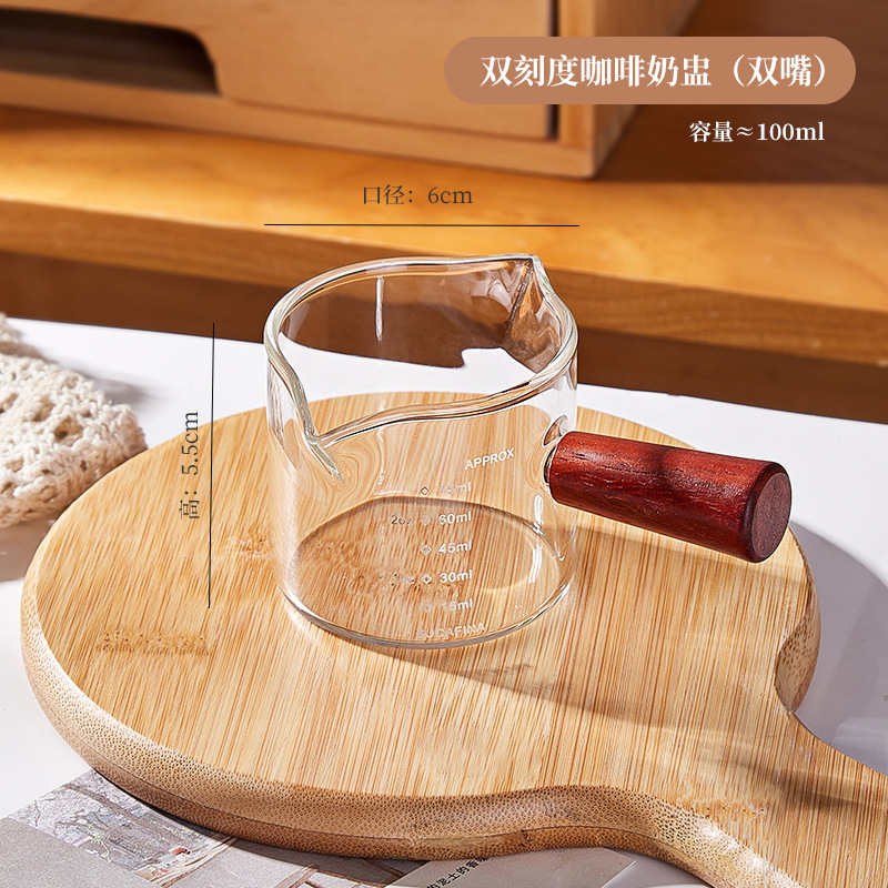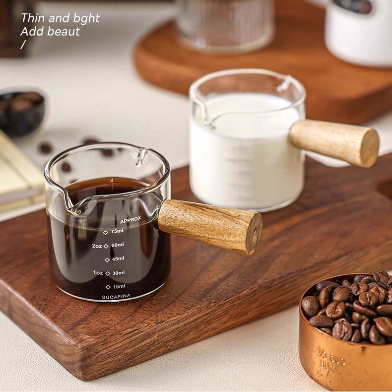 Оптовая продажа стеклянная маленькая чашка молока с шкалой эспрессо экстракционная мерная чашка чашка деревянная ручка мини-молочный цилиндр англо чашка
