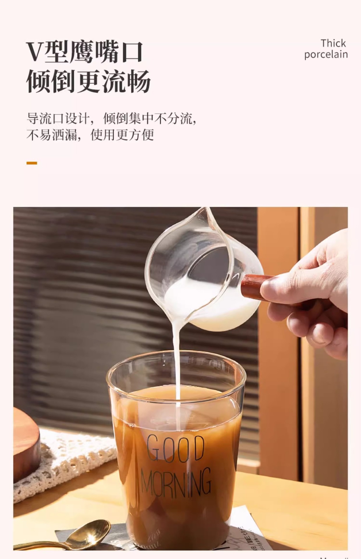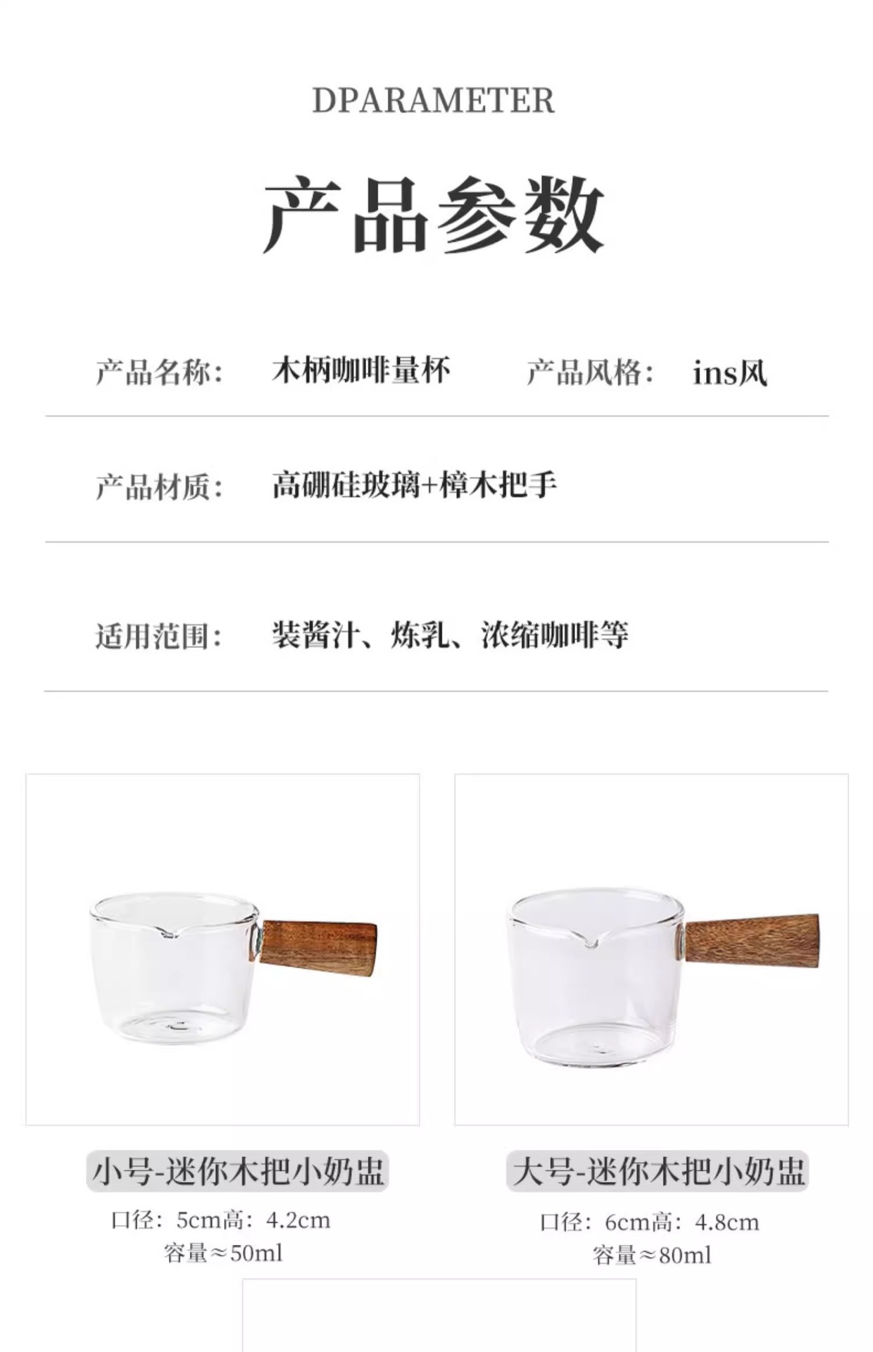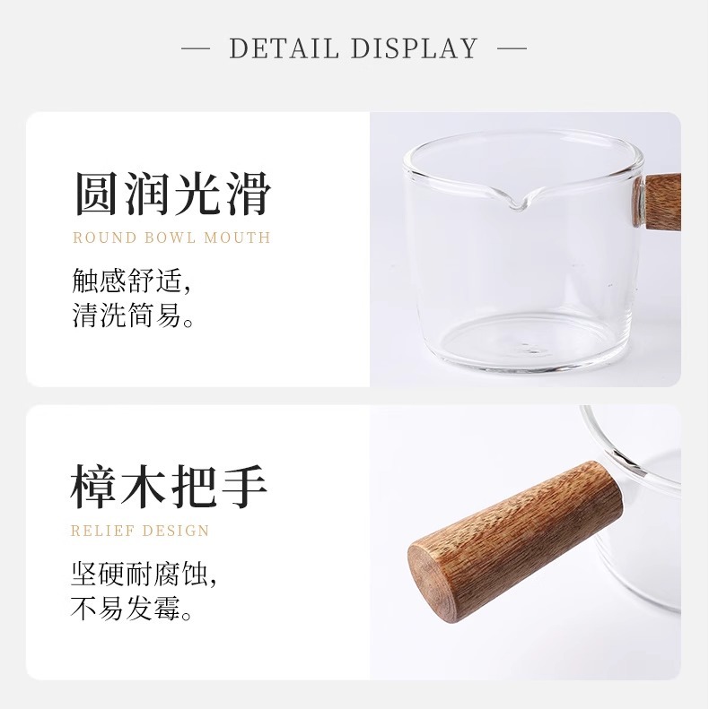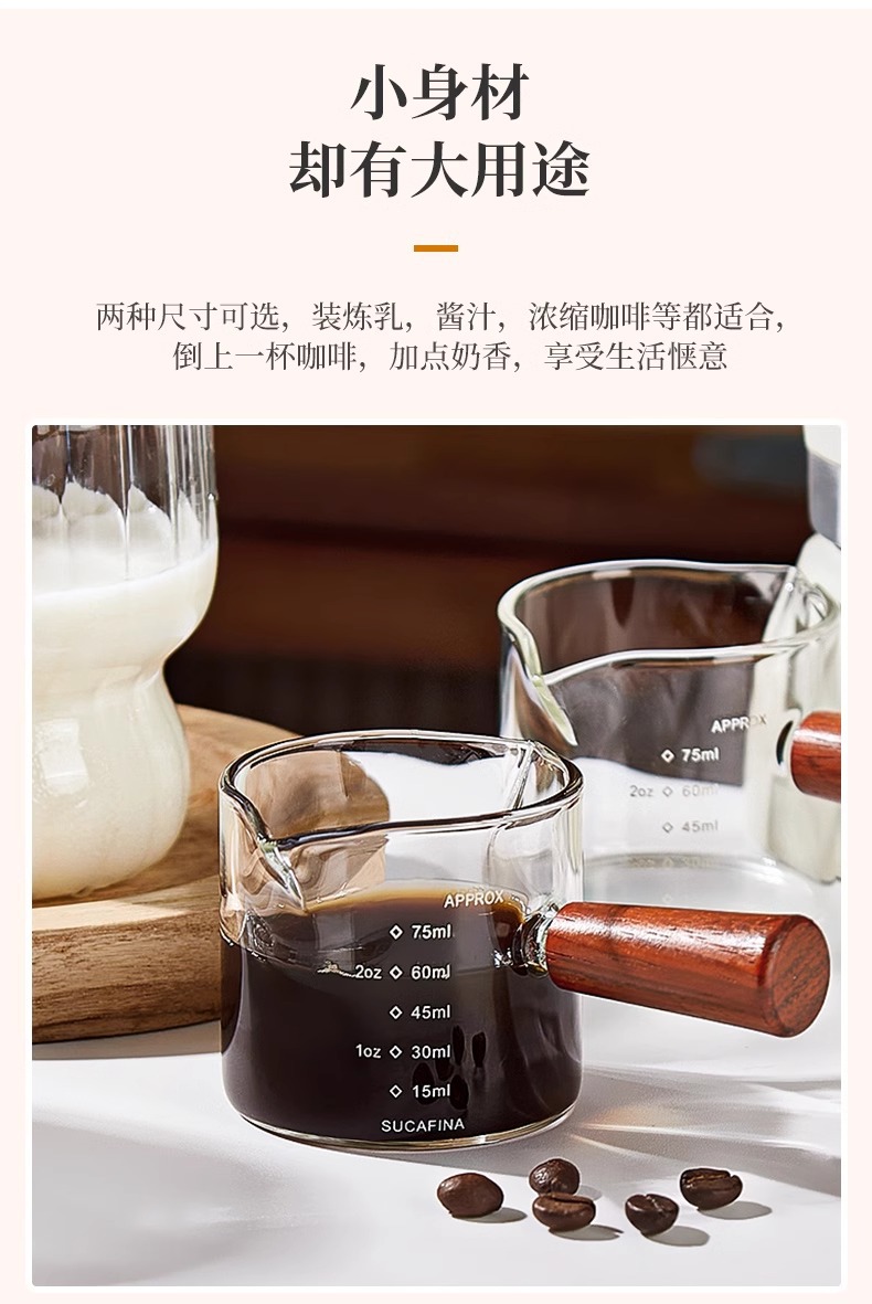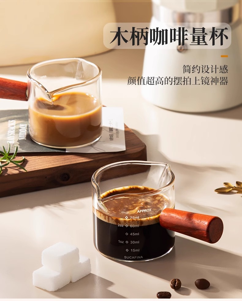 Оптовая продажа стеклянная маленькая чашка молока с шкалой эспрессо экстракционная мерная чашка чашка деревянная ручка мини-молочный цилиндр англо чашка