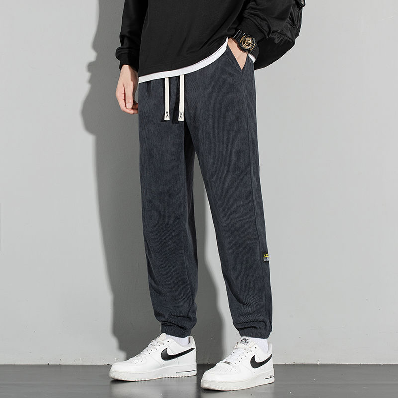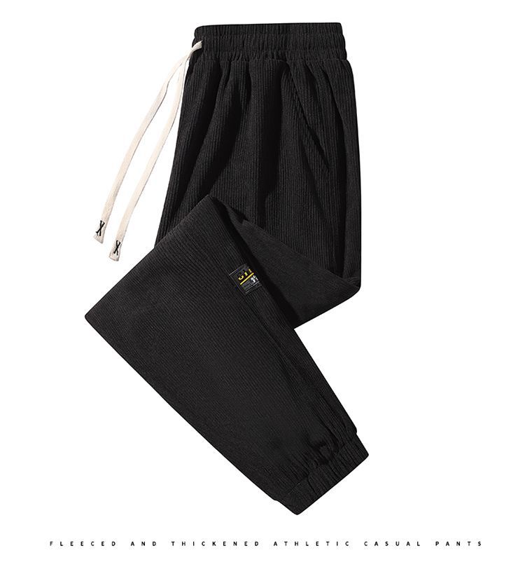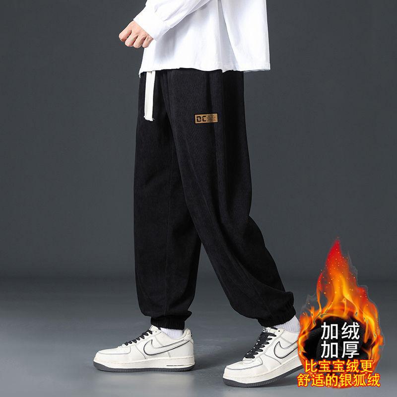 Мужские новые свободные вельветовые повседневные брюки с флисовой подкладкой для осени и зимы, универсальные брюки-джоггеры в стиле пэчворк, спортивный стиль.