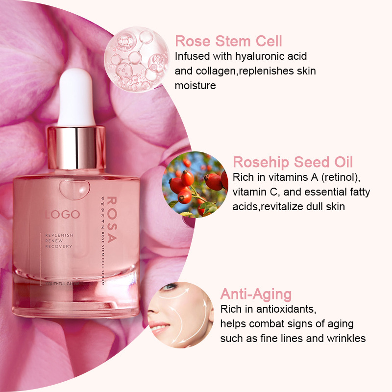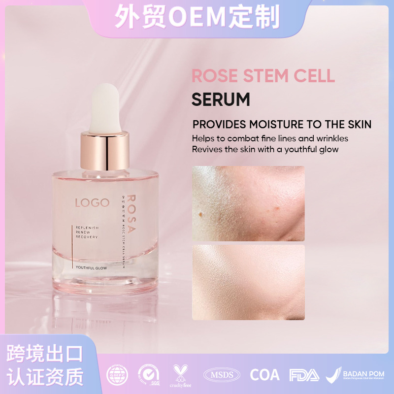 Кросс-бордерный хит продаж OEM розовая осветляющая и омолаживающая эссенция глубоко увлажняющая эссенция сыворотка с клеточными стволовыми клетками